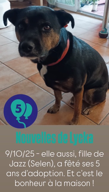 Au jour d’aujourd’hui, Lycka est douce et câline. Plutôt menue par rapport au reste de la portée. Discrète par moments, gentille mais a aussi du caractère. Elle râle quand elle n’a pas ce qu’elle veut ou qu’on l’embête. Elle a bien trouvé sa place dans la meute.