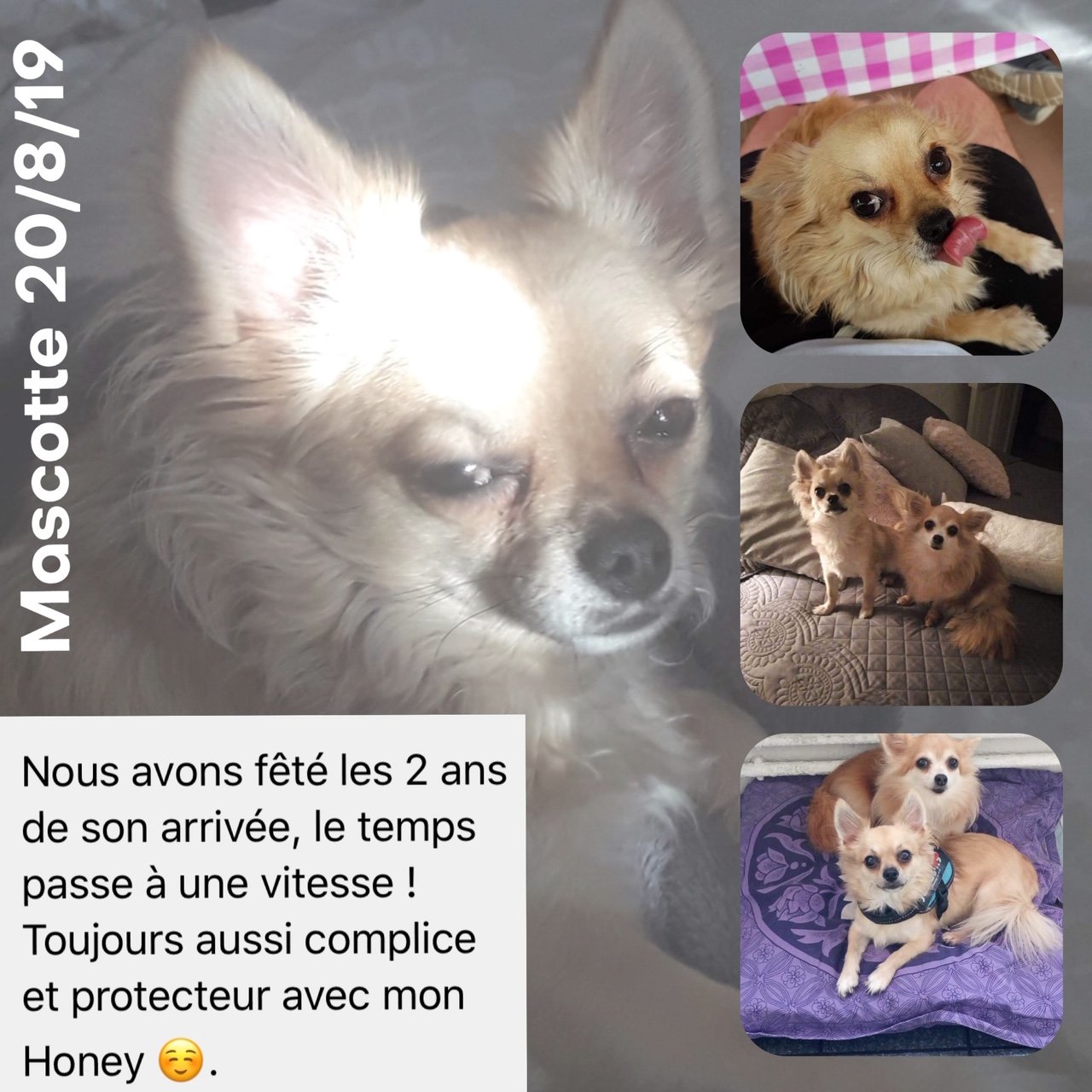 MASCOTTE a vécu chez un couple qui s’est laissé dépasser par le fait que leurs chihuahuas n’étaient pas stérilisés, et ils se sont retrouvés avec une quinzaine de chiens. Leurs tentatives de placer eux-mêmes les divers chiots chez des familles via internet se sont trop souvent avérées être de mauvais placements.