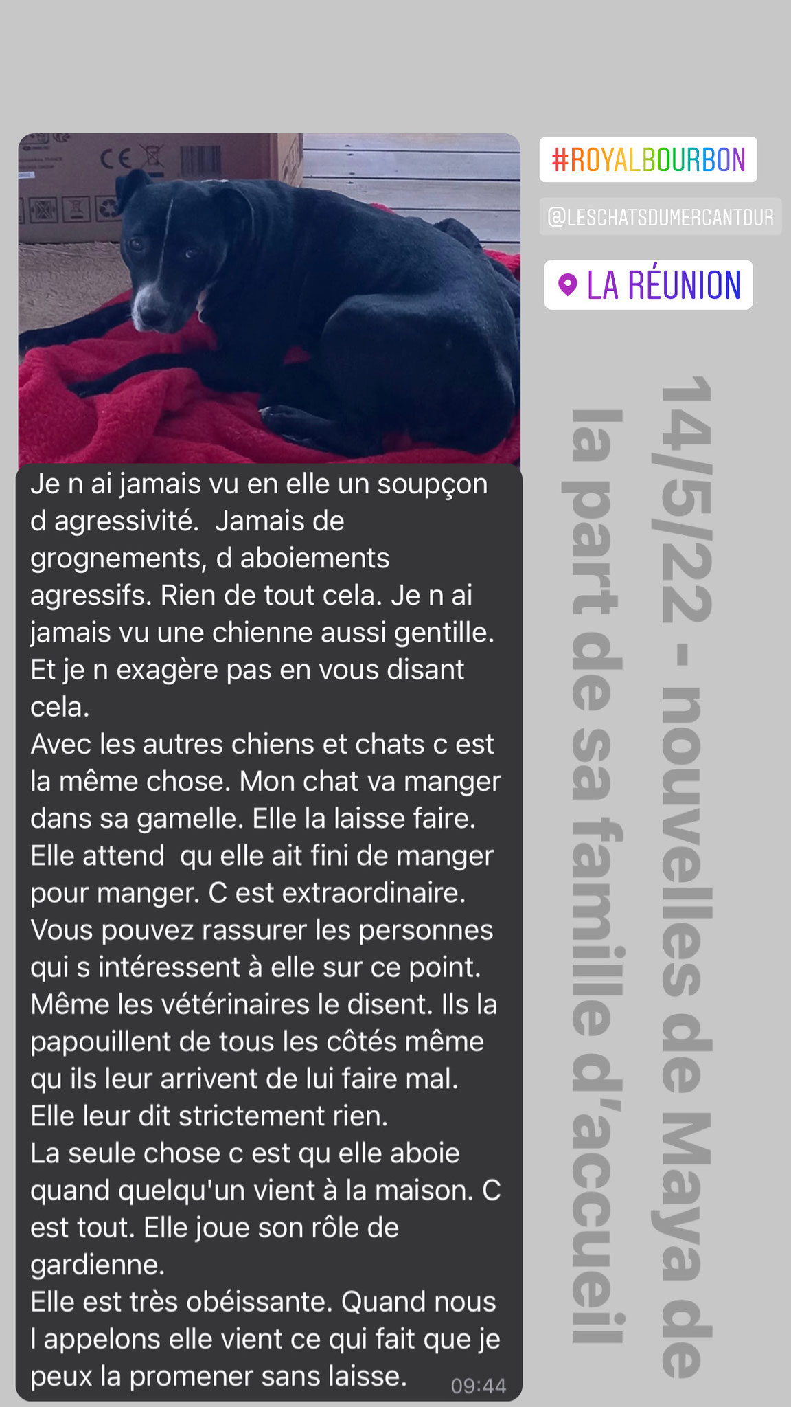 MAYA est une chienne extraordinaire, très gentille et très proche de l’humain.