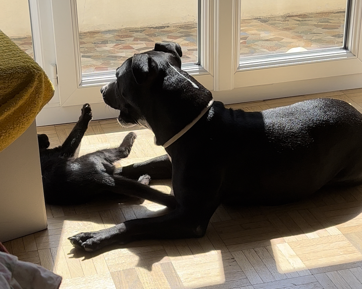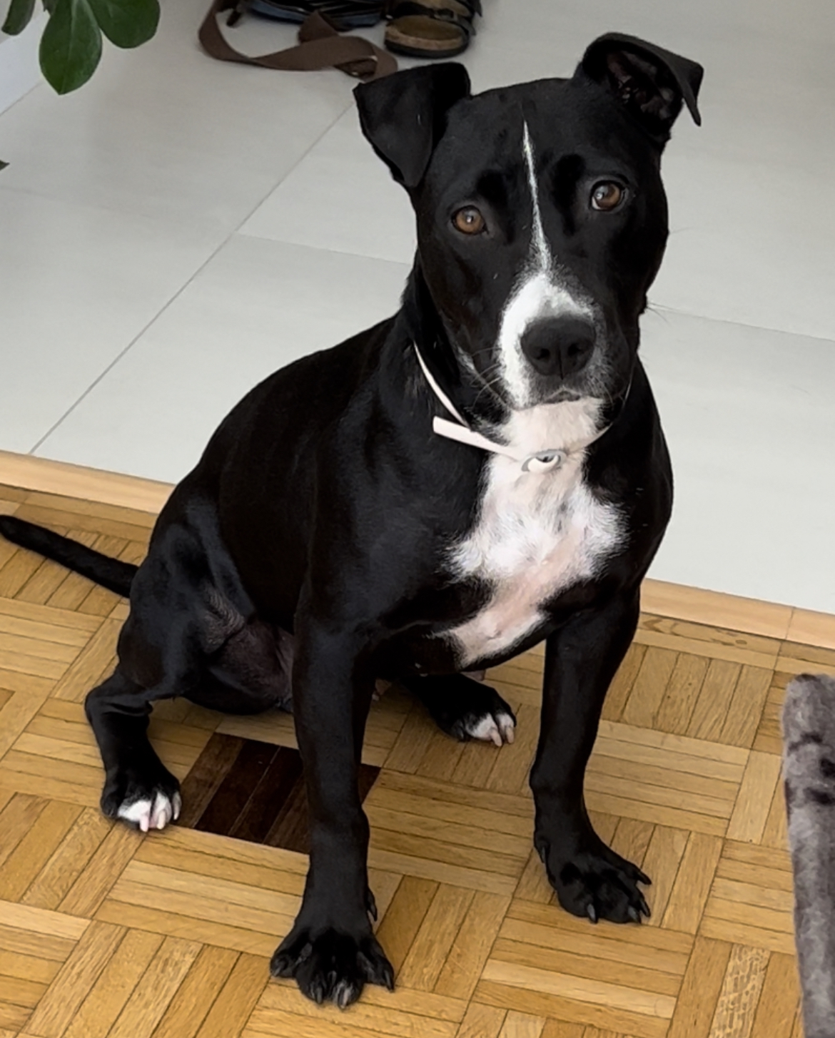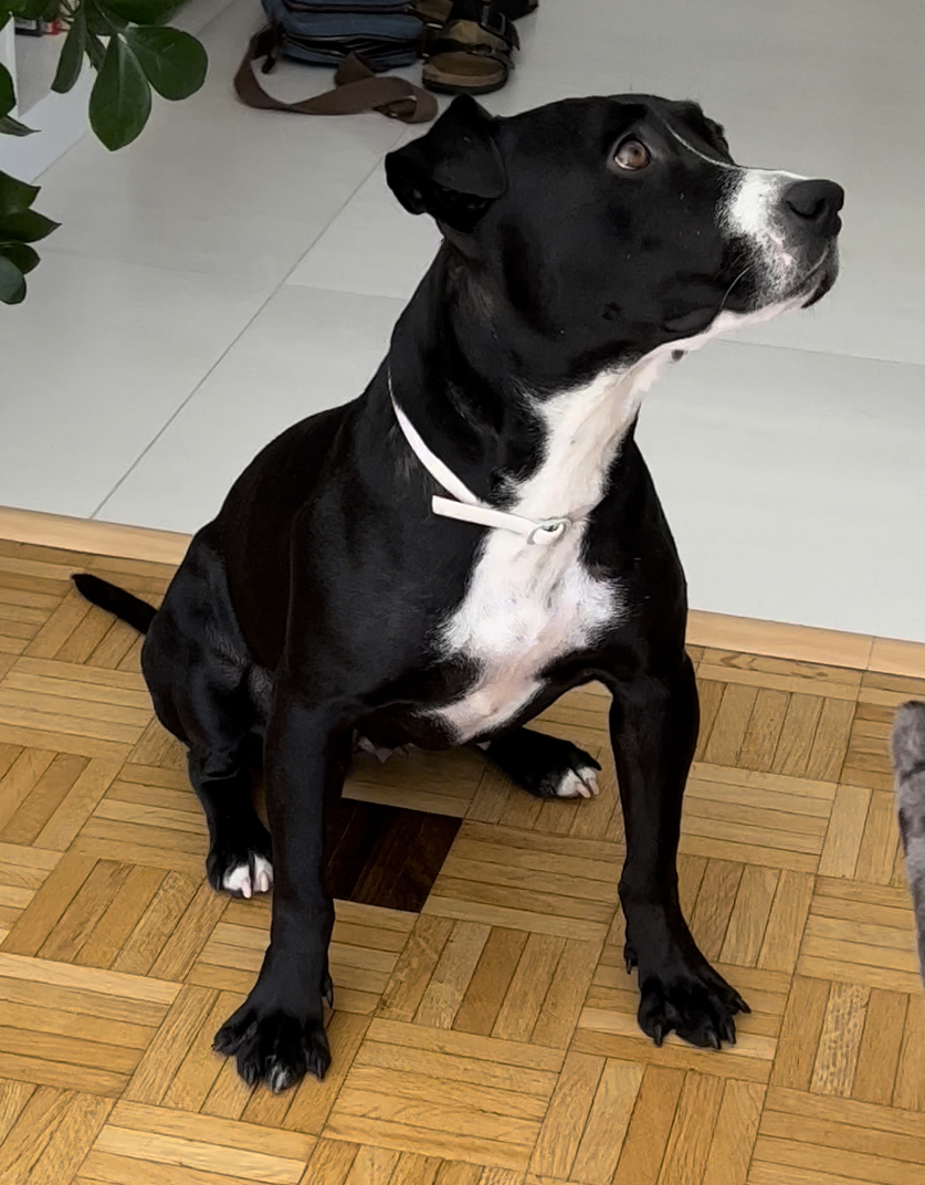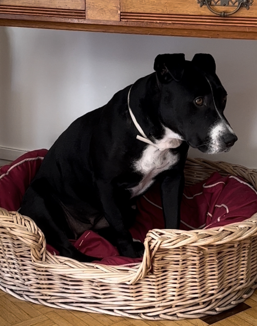 À l’heure actuelle, elle est très sage et très calme. Elle reste au pied lors des balades sans laisse, posée en voiture, propre, elle ne détruit rien et ne sort jamais de la propriété qui n’est pas clôturée.