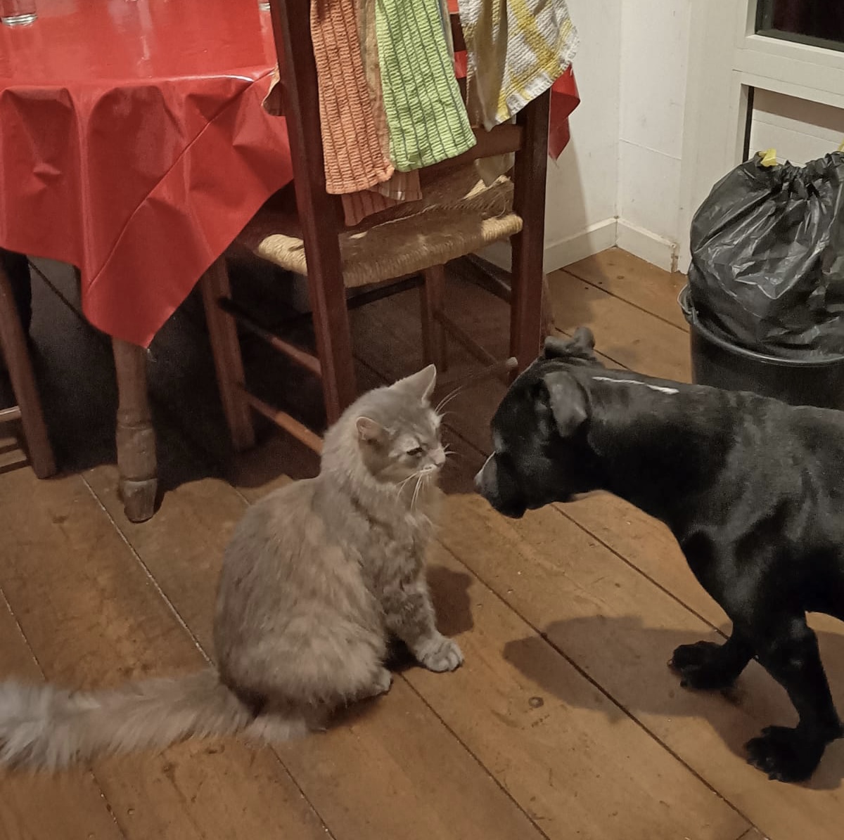Ses peurs : le balai et le linge que l’on secoue. Cela doit la renvoyer à des mauvaises expériences du passé, mais le temps et la désensibilisation finiront par estomper ces petites craintes.