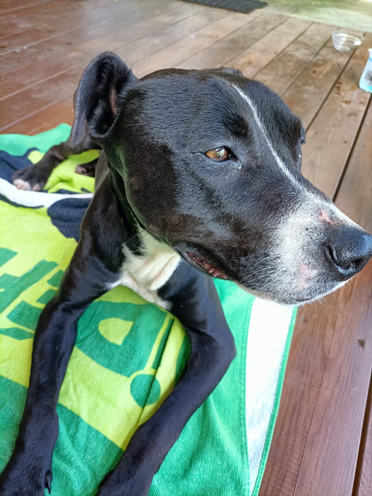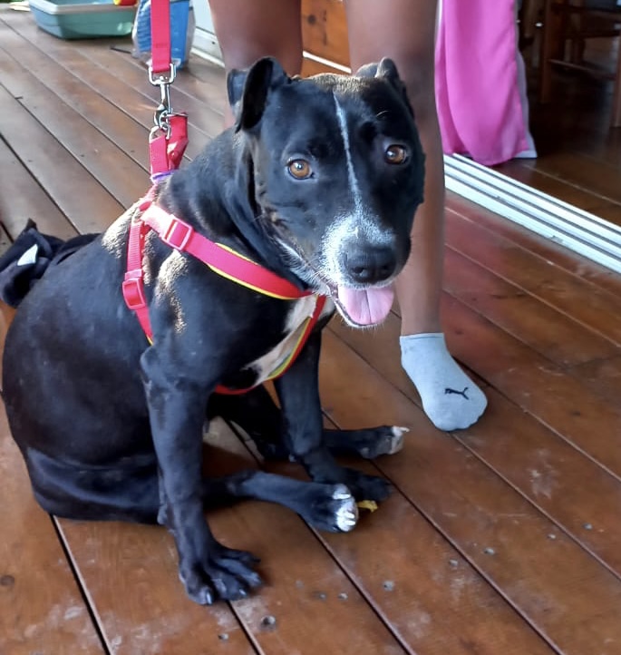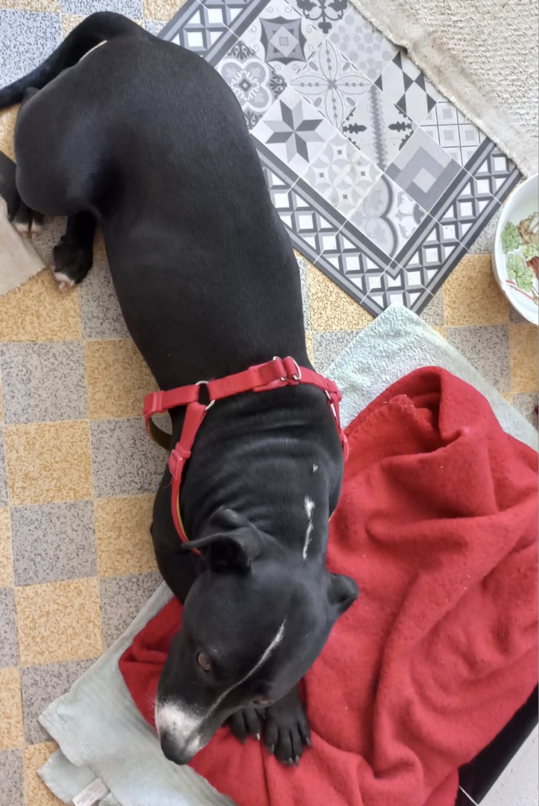 Femelle qui sera stérilisée en Juillet 2022 (car actuellement en chaleurs), identifiée et vaccinée.