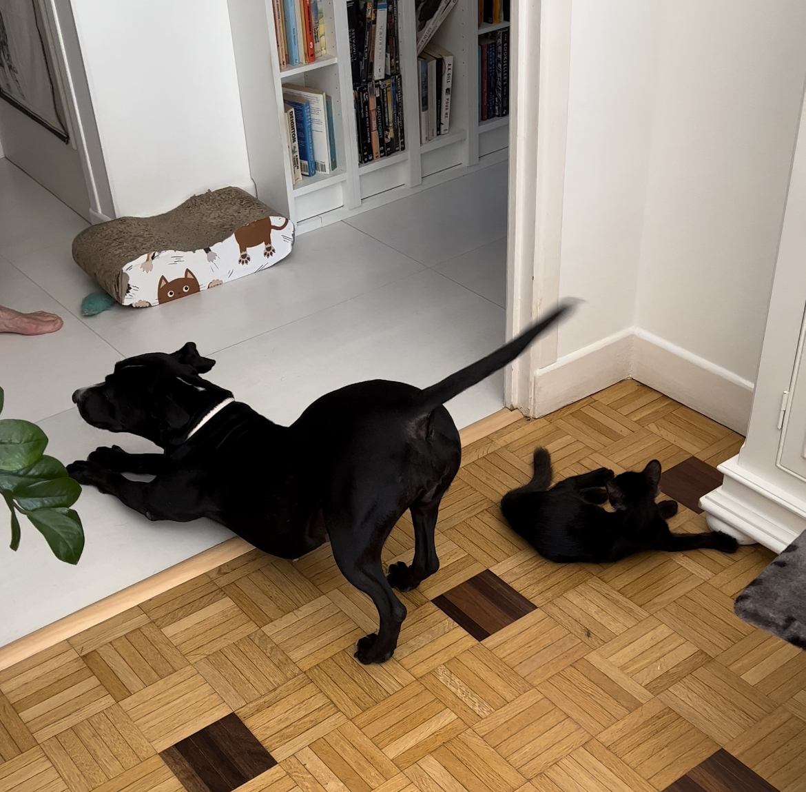 Très proche du chat de la famille, elle s’y est attachée dès le premier jour.