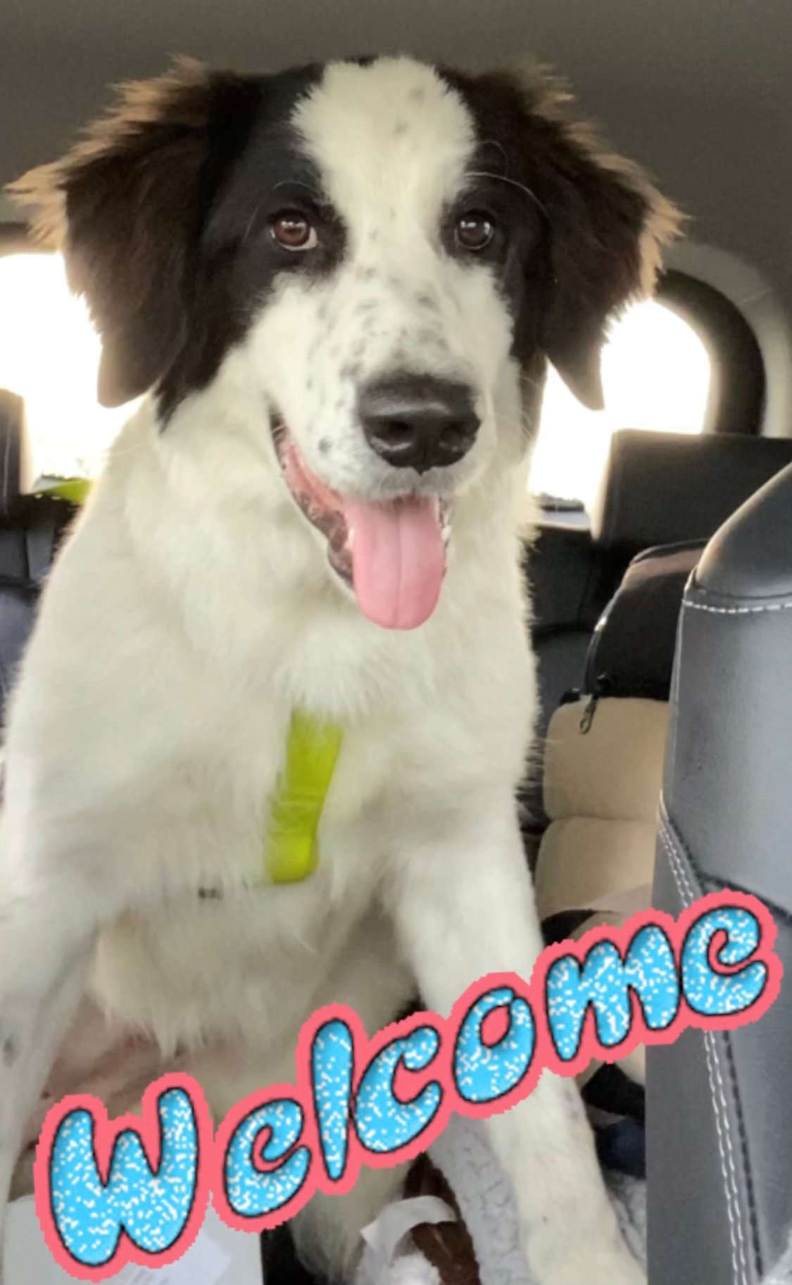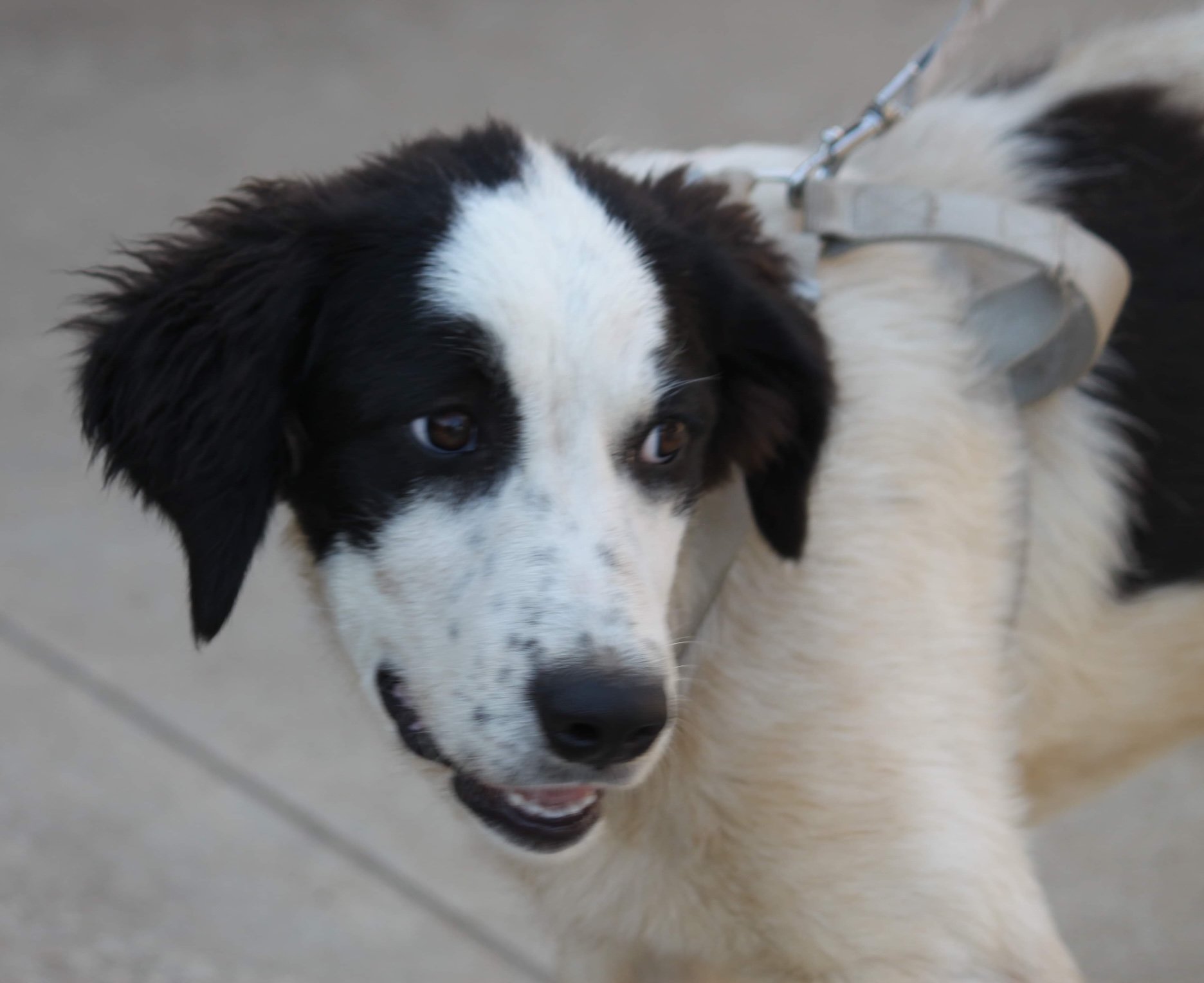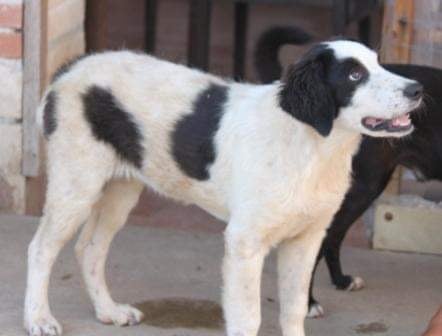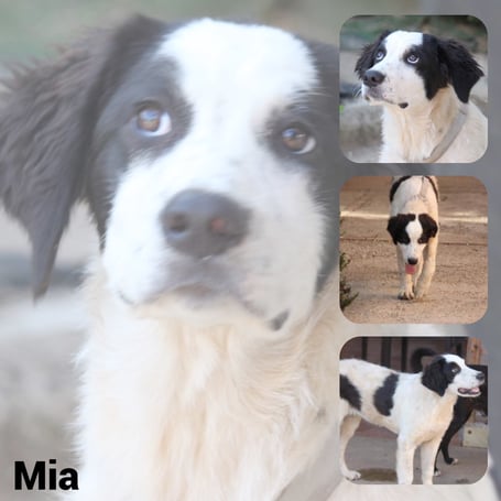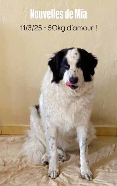 MIA est une chienne de type croisée berger de Maremme, non lof, couleur noire et blanche.