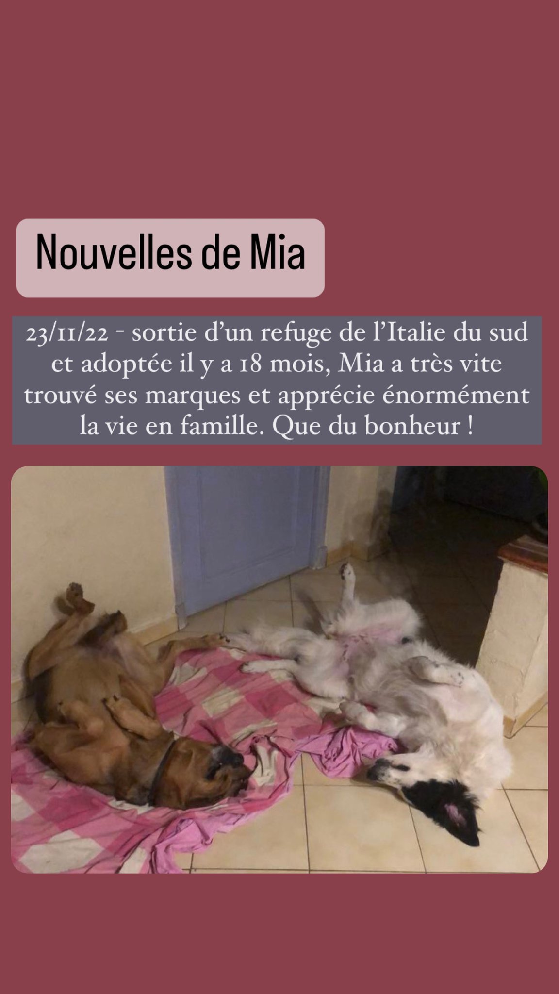 Mia restera donc au Refuge dans le sud de l’Italie, et ne sera covoiturée en France dans le 06, que si une famille d’adoption souhaite l’accueillir.