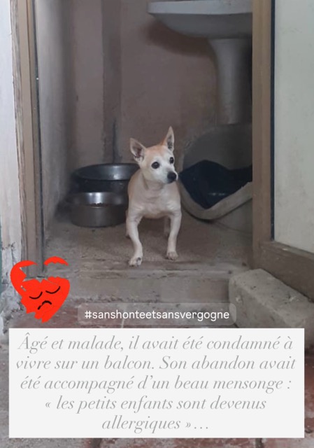MIKI est originaire du sud de lâItalie. Il a Ă©tĂ© abandonnĂ©, sans Ă©motion, parce que soi-disant, les petits enfants Ă©taient « allergiques ». Il vivait confinĂ© sur un balcon⊠Nous nâavons pas eu le cĆur de refuser lâappel Ă lâaide, malgrĂ© le fait quâil ne nous semblait pas en bonne santĂ©. A la suite de son diagnostic mĂ©dical, nous avons compris que la famille ne souhaitait pas sâencombrer de leur chien vieux malade, ils ont sciemment menti pour sâen dĂ©barrasser.