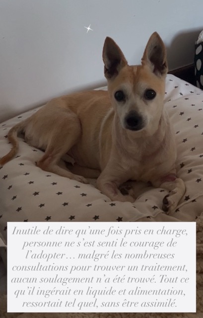 Il nâa malheureusement pas de chance, car il est atteint de la maladie de cushing (traitement Ă vie), il du sable dans la vessie et il a des pics de glycĂ©mie sans pour autant ĂȘtre diabĂ©tique (alimentation spĂ©ciale). Pour lui, tous les frais sont pris en charge par notre association.