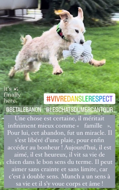 MUNCH a été trouvé abandonné dans la rue, au Liban. Il a été recueilli et pris en charge par le Refuge de l’association BETA LEBANON.