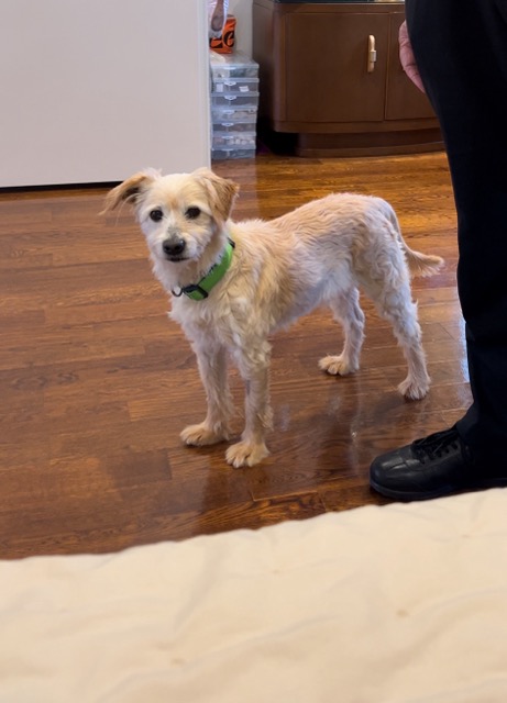 MUNCH est un chien de type croisé bichon, non lof, couleur beige.