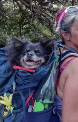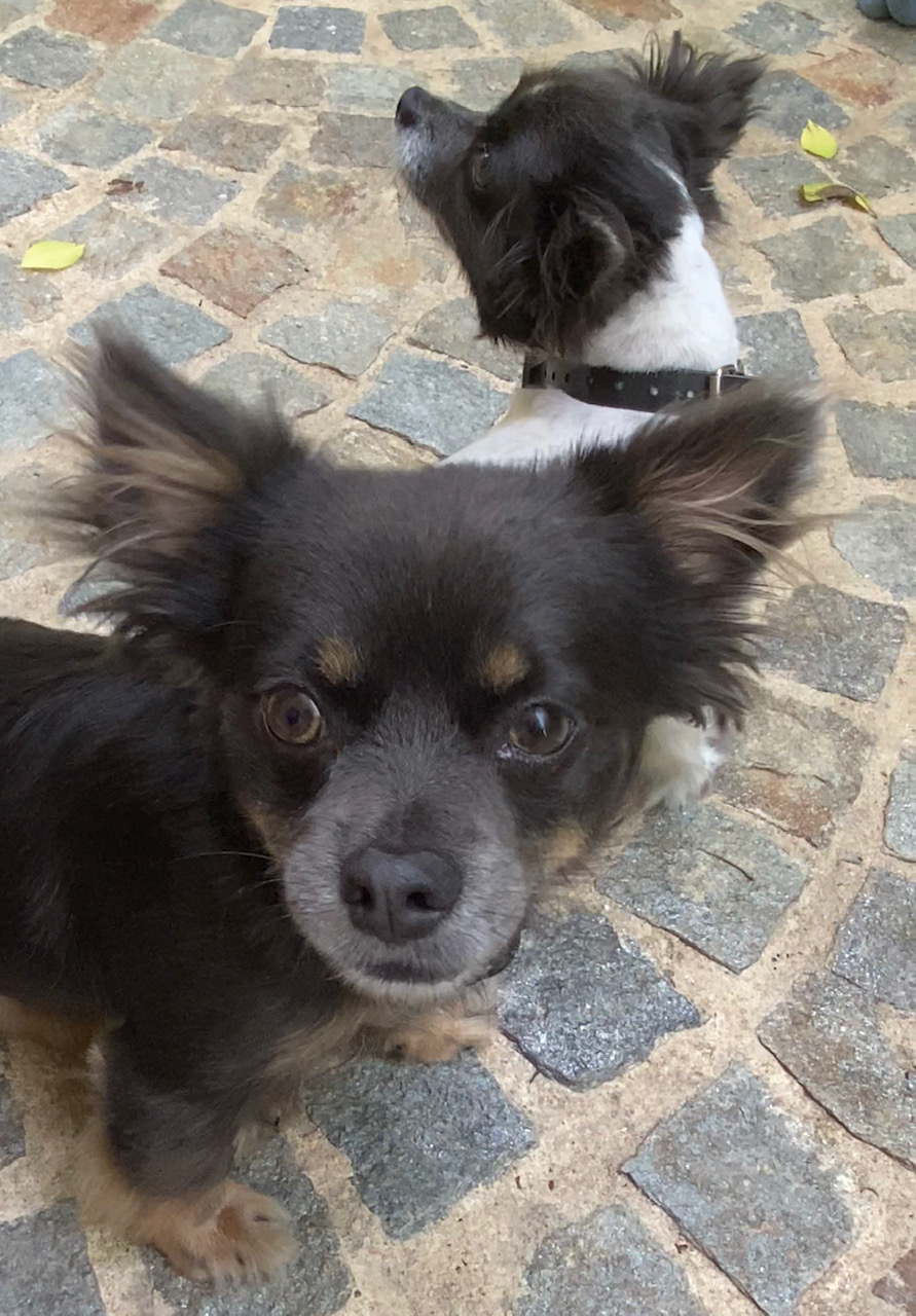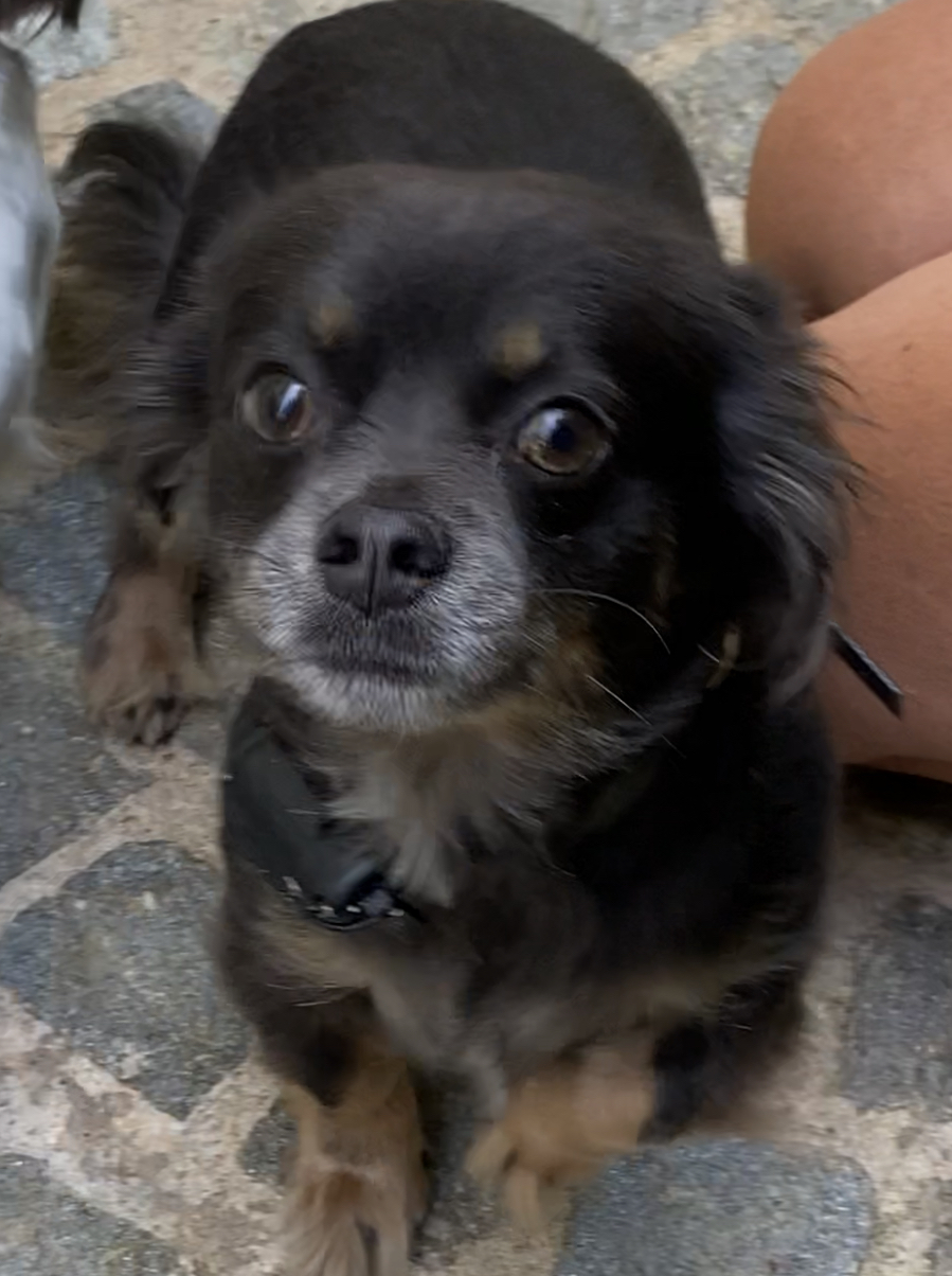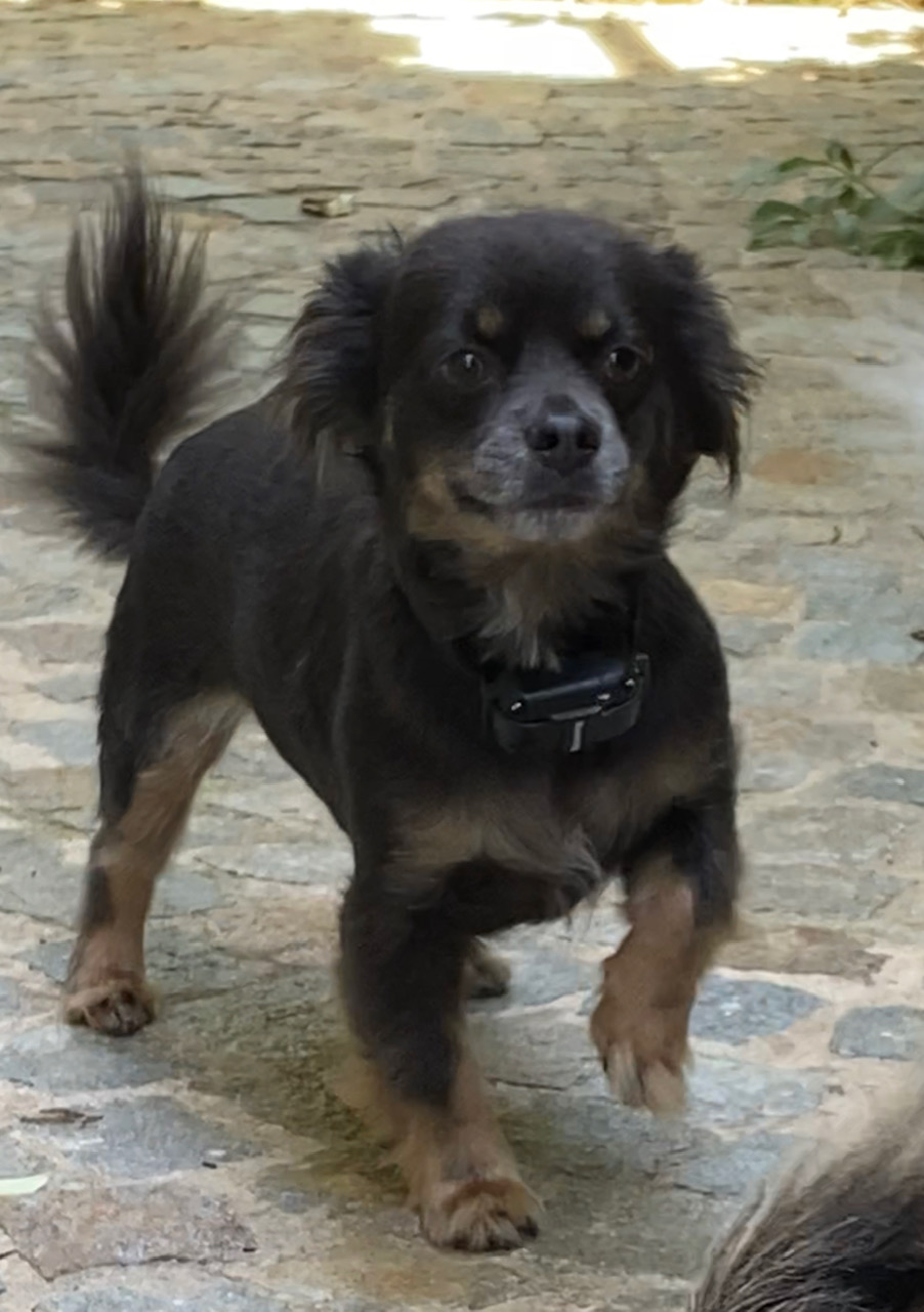 Nelson est un chien de type Chihuahua à poil long, non lof, couleur bleu tricolore.