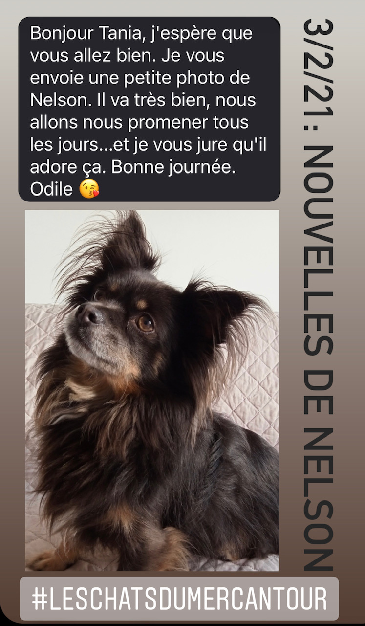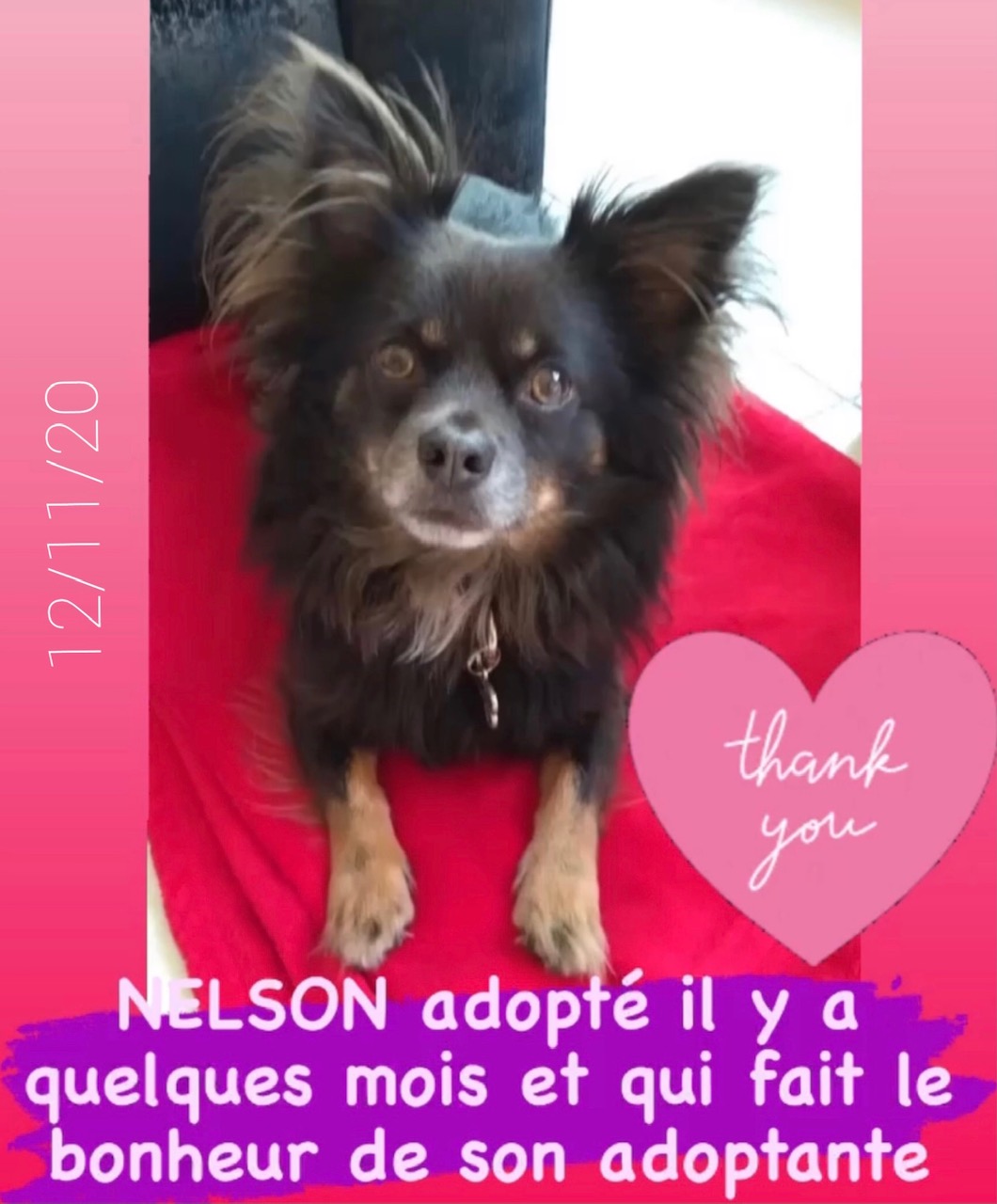 Nelson est un chien né chez la famille qui s’en sépare en vue d’un déménagement à l’étranger. Il vit en maison avec jardin, en compagnie de sa sœur et son père.