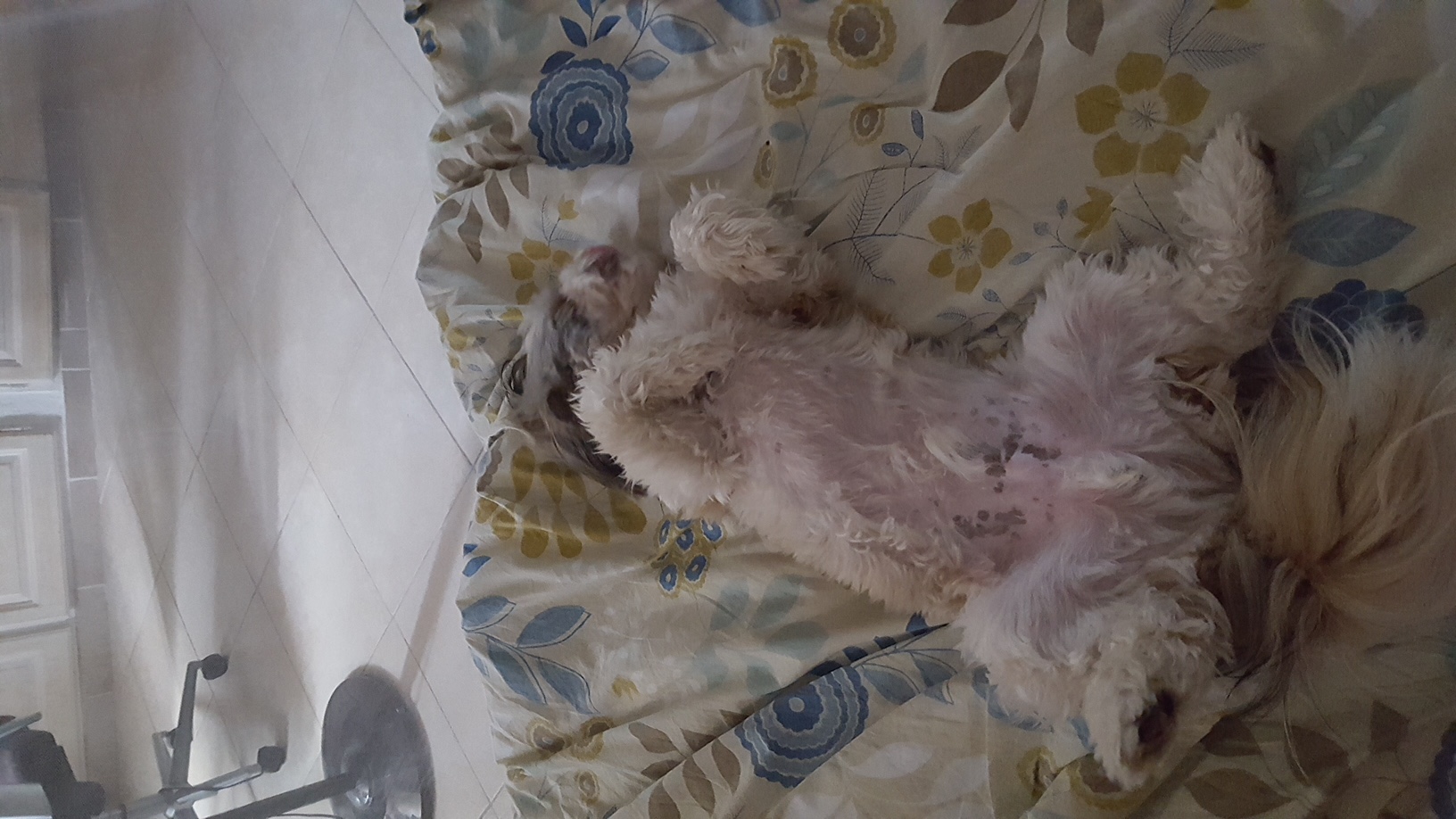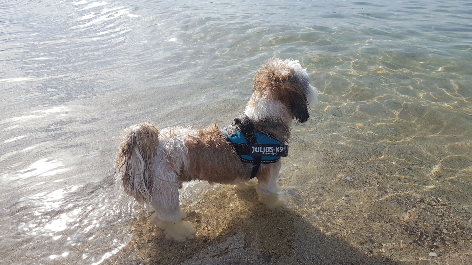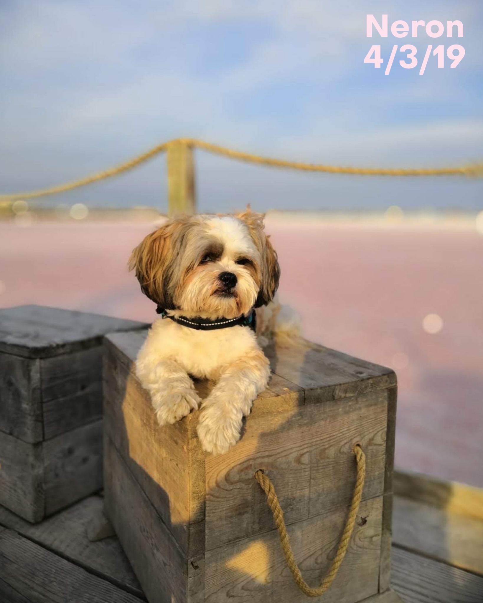NERON est un chien de type Shih Tzu, non lof, couleur blanc et beige aux yeux vairons. Mâle castré, vacciné (rage y compris), pucé 250268731915373. Traité contre les parasites. Il pèse environ 8 kg.