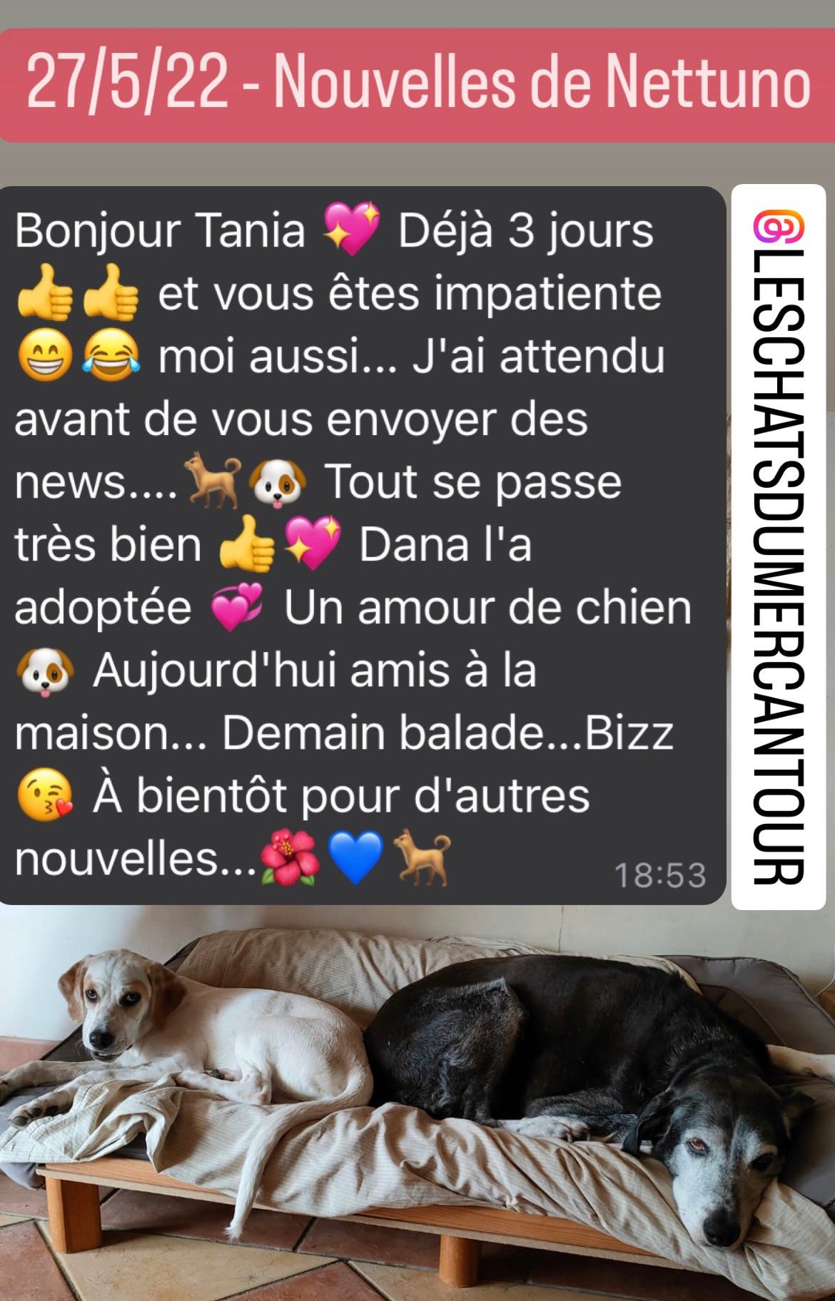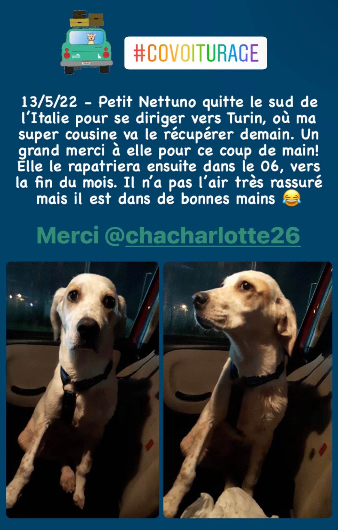 Il sera rapatrié en France le 25 Mai 2022 et donc visible et adoptable à partir de cette date, dans les Alpes Maritimes (06).