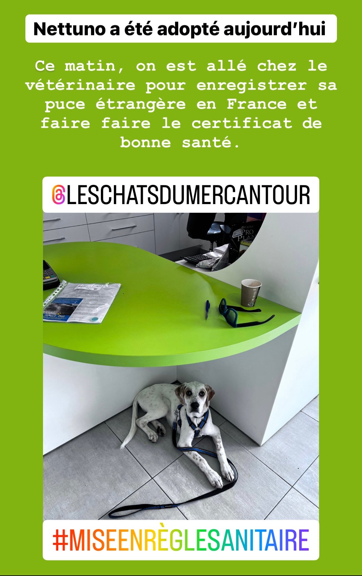 Ce chiot arrivera d’Italie le 25 Mai et sera visible et à l’adoption à partir de cette date là. En attendant, nous lançons sa diffusion pour lui trouver une famille d’adoption consciencieuse et investie.