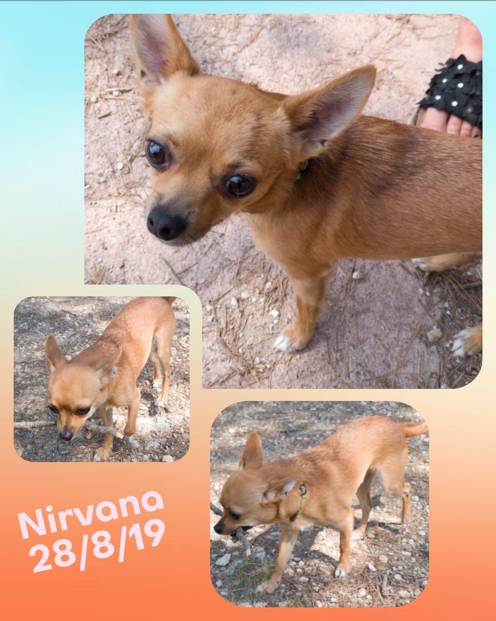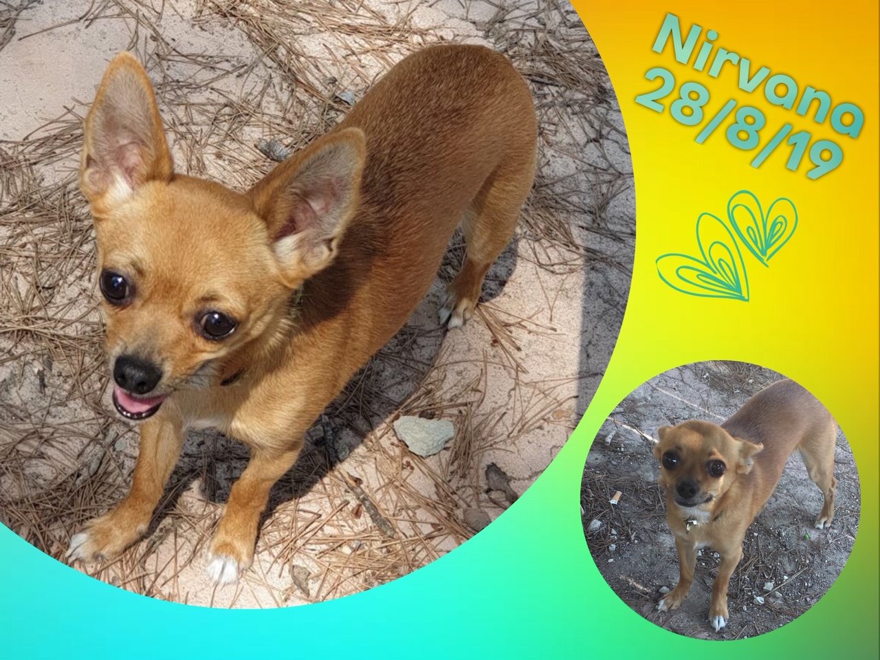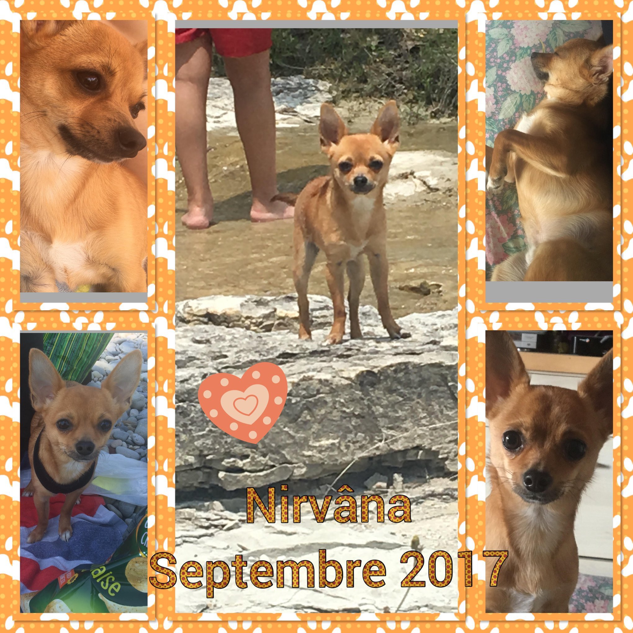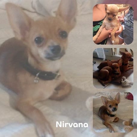 NIRVANA est issu d’une portée par un couple qui s’est laissé dépasser par le nombre de chihuahuas qui n’étaient pas stérilisés, et ils se sont retrouvés avec une quinzaine de chiens. Leurs tentatives de placer eux-mêmes les divers chiots chez des familles via internet se sont trop souvent avérées être de mauvais placements.