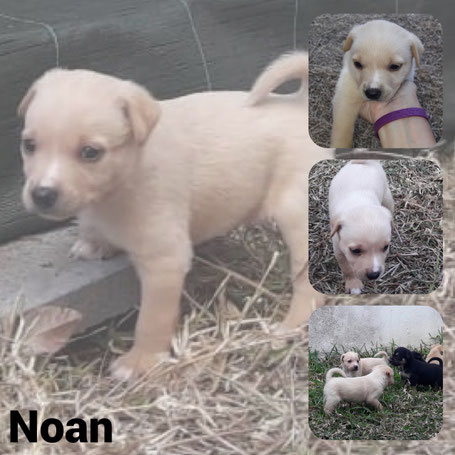 NOAN est un chiot de type Royal Bourbon (appellation attribuée aux chiens non de race de la Réunion), non lof, couleur beige et blanc.