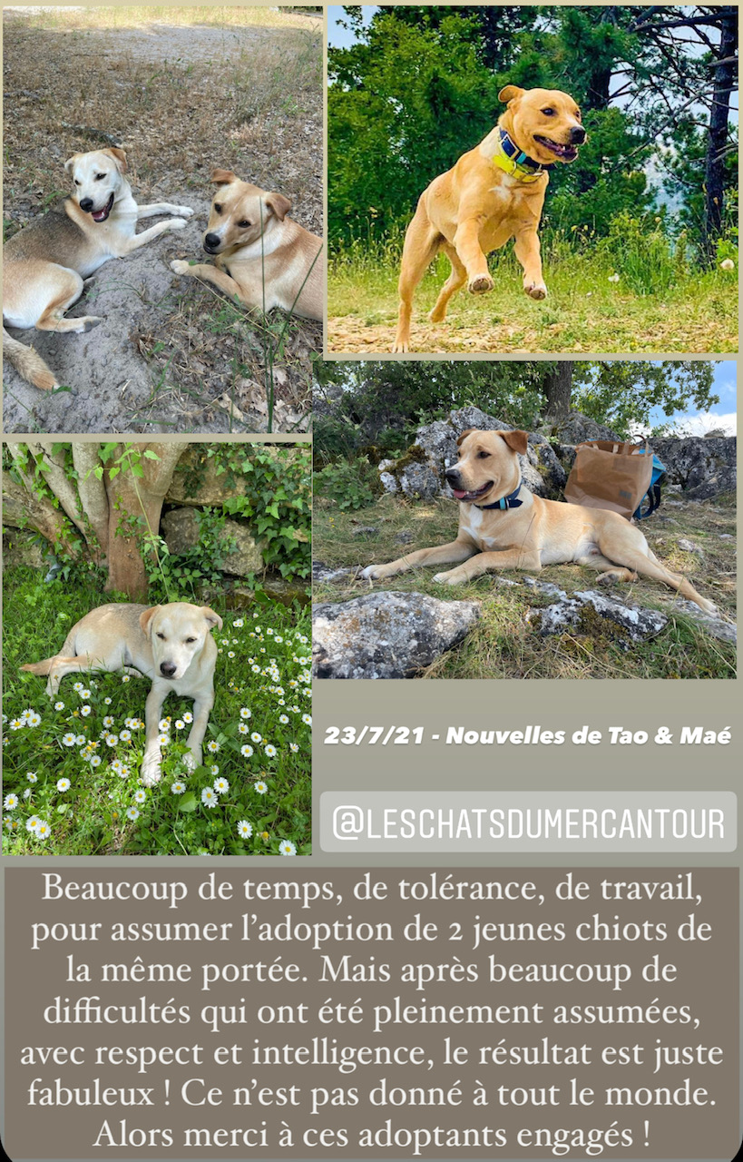 NB : merci de mûrement réfléchir à l’engagement moral et financier qu’une adoption représente (santé, factures vétérinaires, entretien, alimentation environ 800 euros par an, absences, vacances ou autres = pension, accessoires quotidiens, éducation, etc.). Merci aussi de bien vous renseigner au préalable sur les caractéristiques de la race concernée. Un chien vit en moyenne 15 ans. C’est une être sensible avec tout ce que cela implique, ce n’est pas un objet ni un être qui agit sur commande.