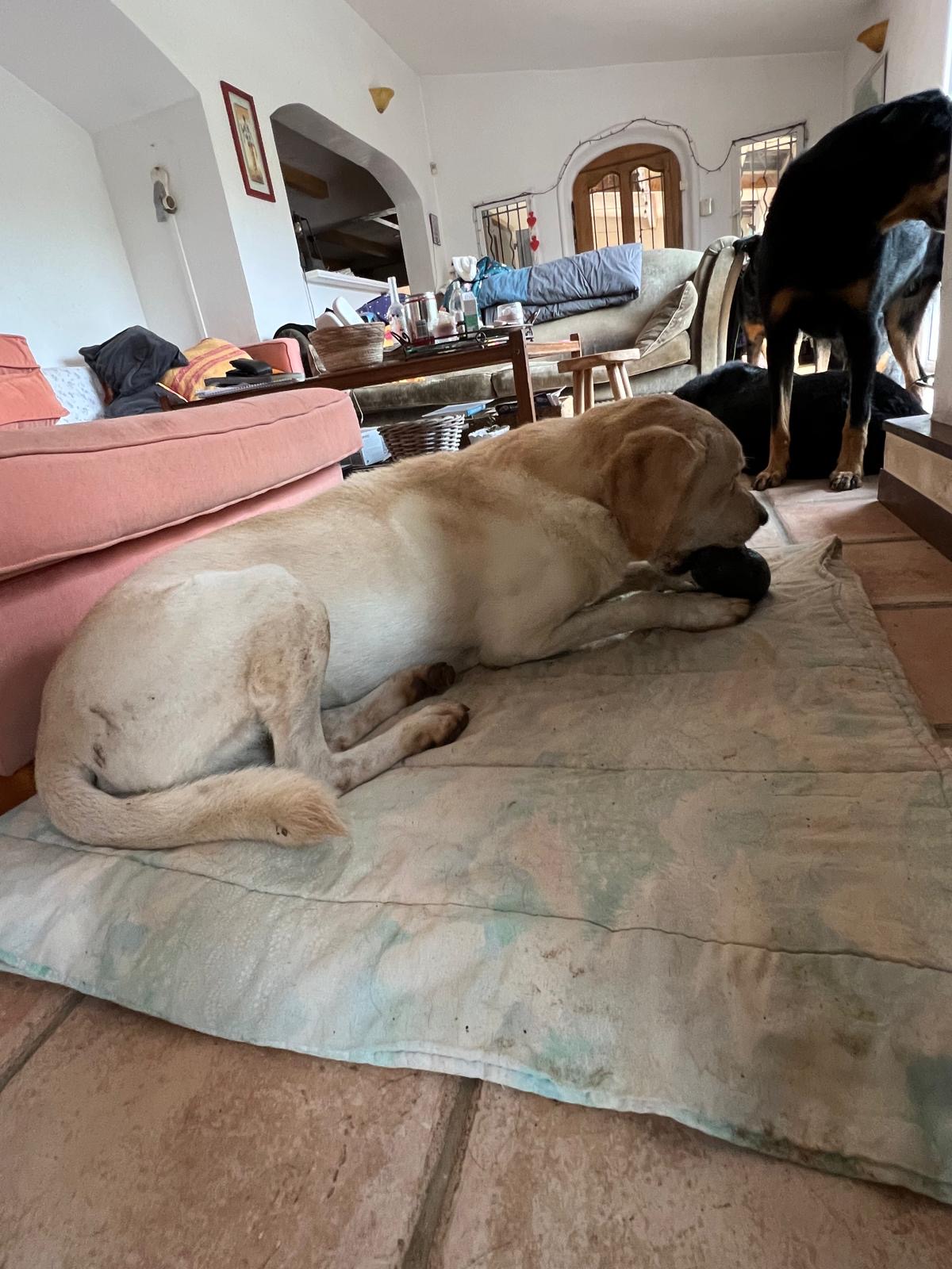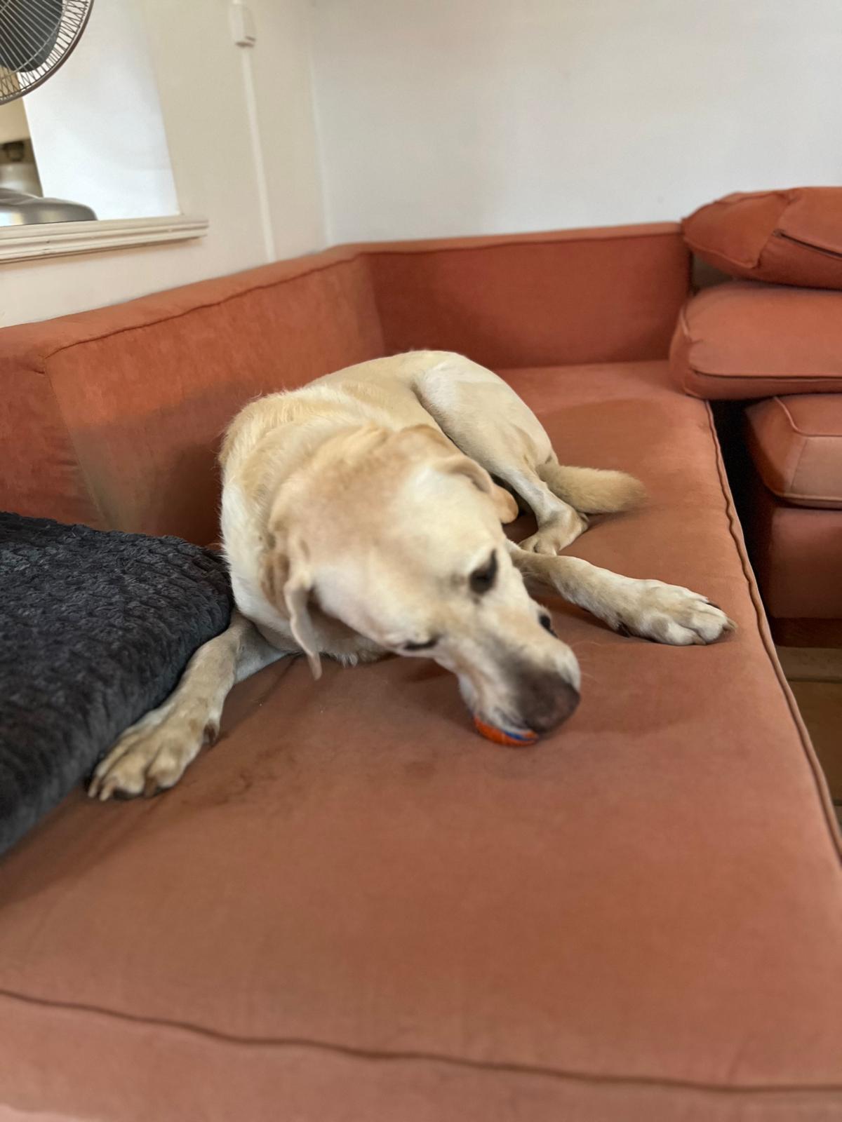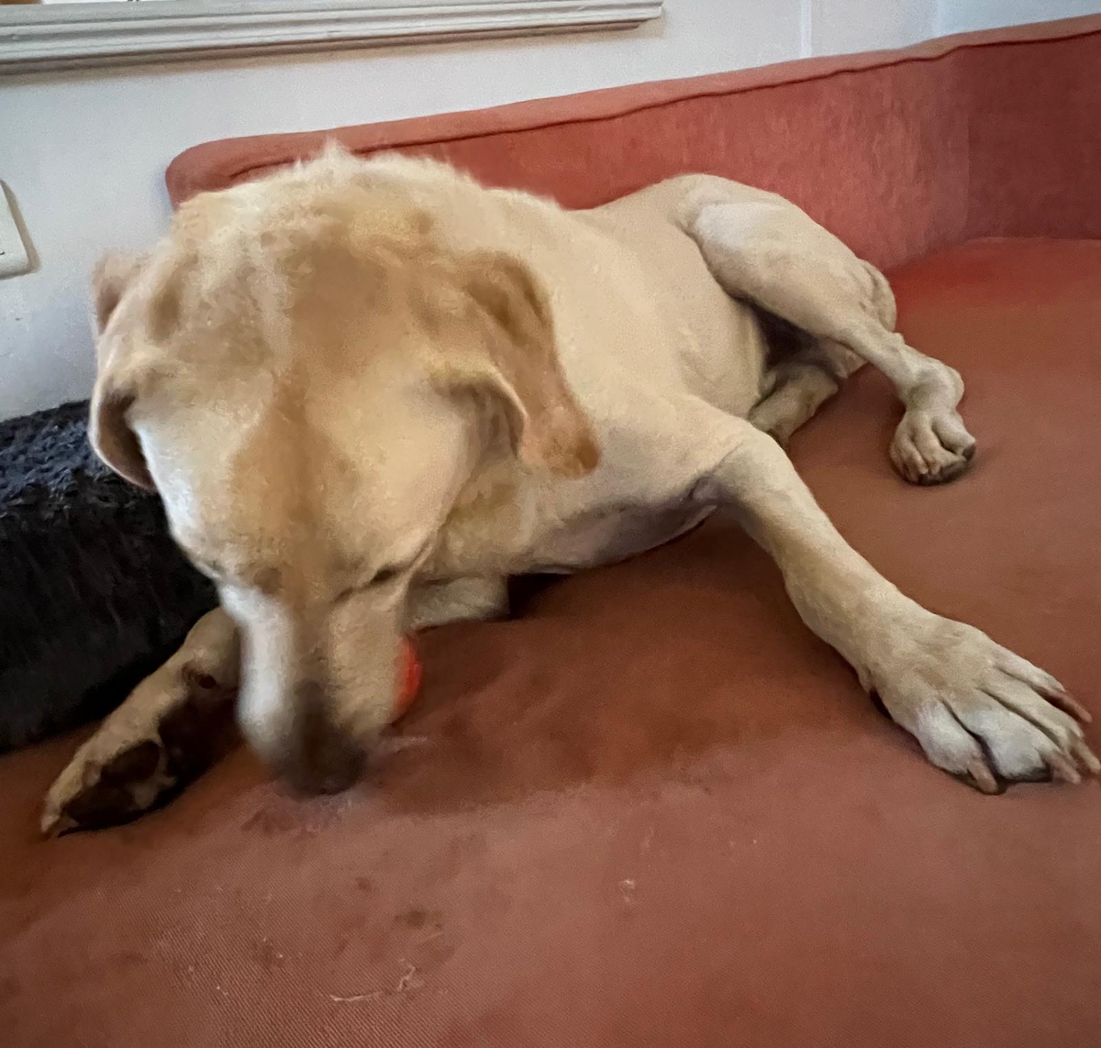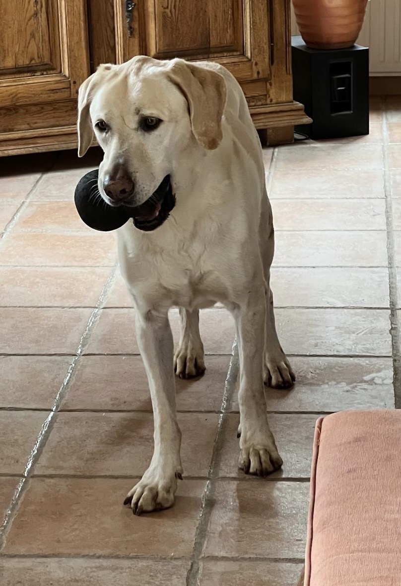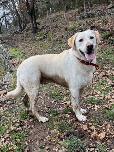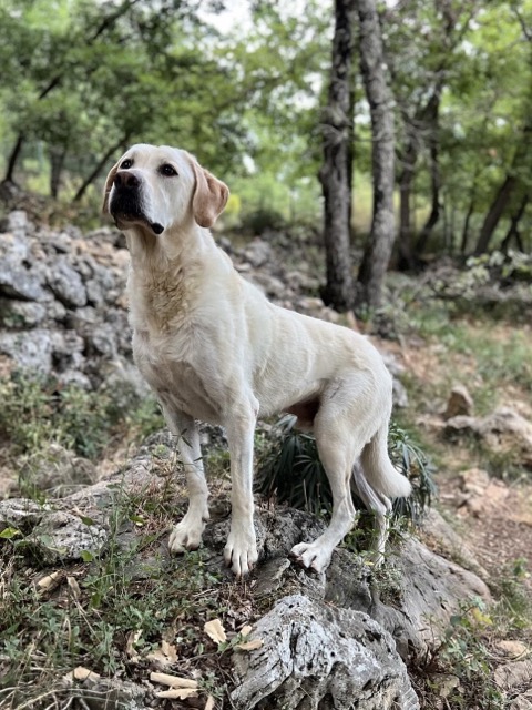 NOMAD est un chien de type Labrador (haut sur pattes), non lof, couleur sable.