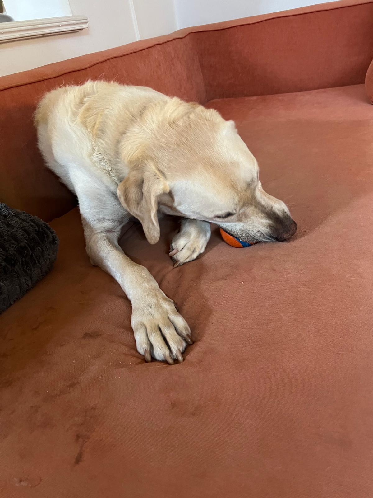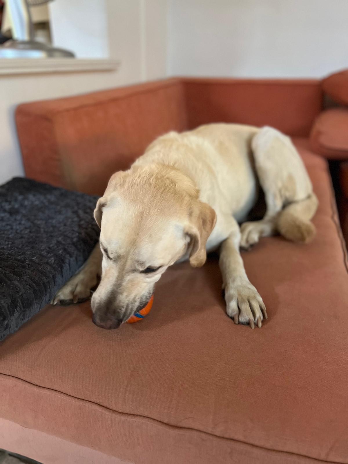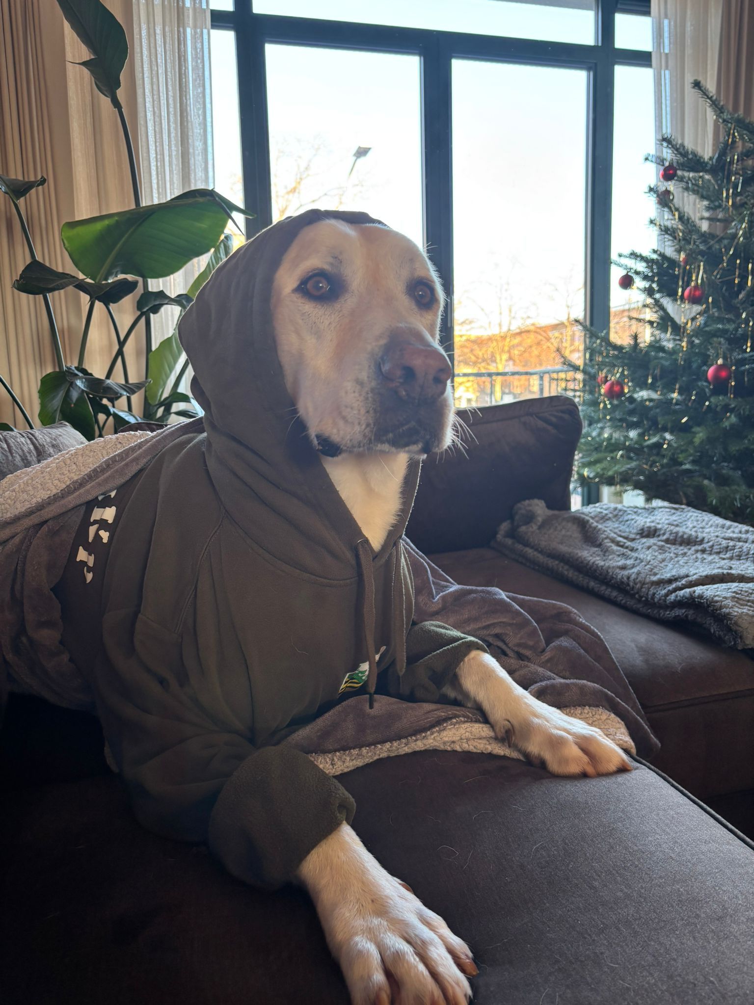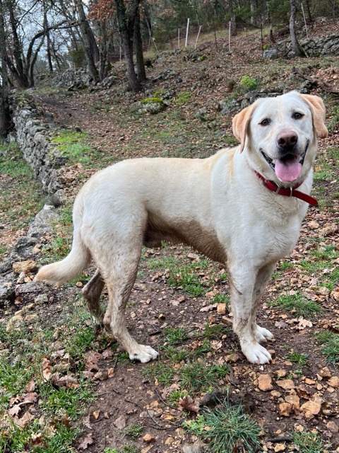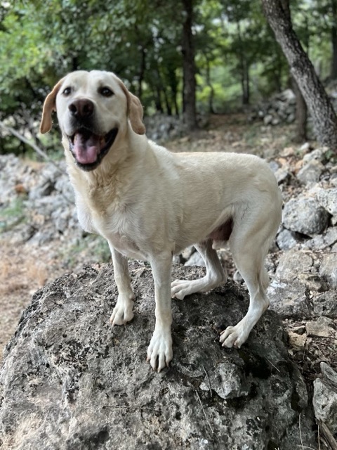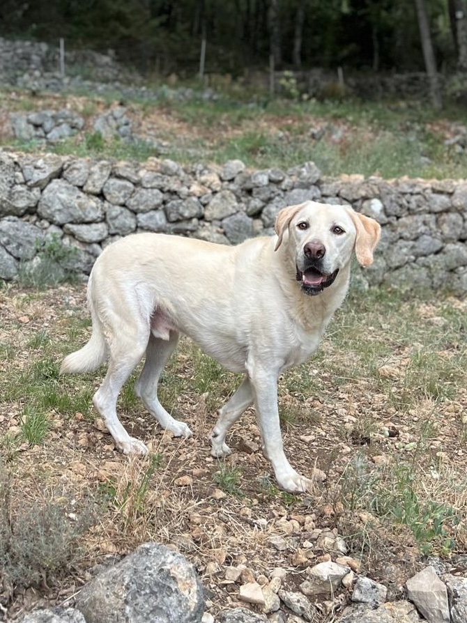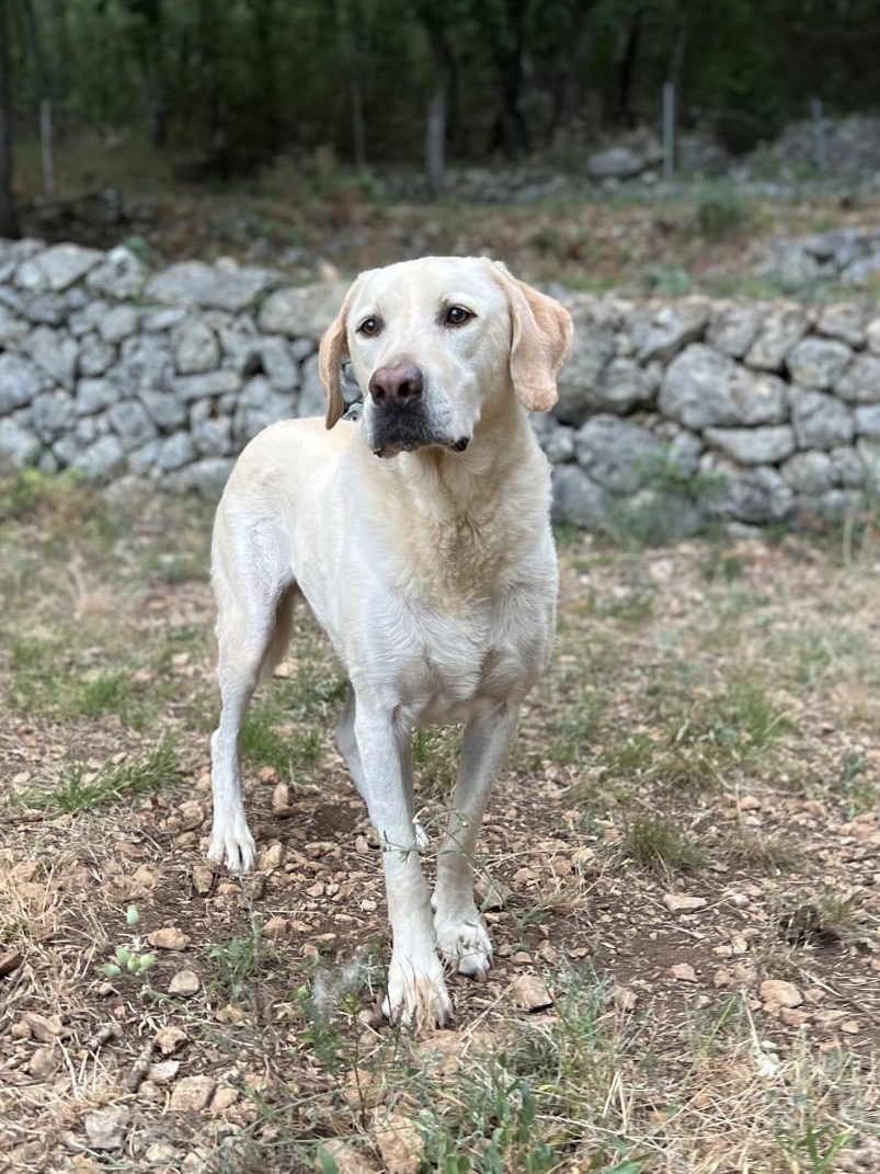 NOMAD est un chien de type Labrador (haut sur pattes), non lof, couleur sable.