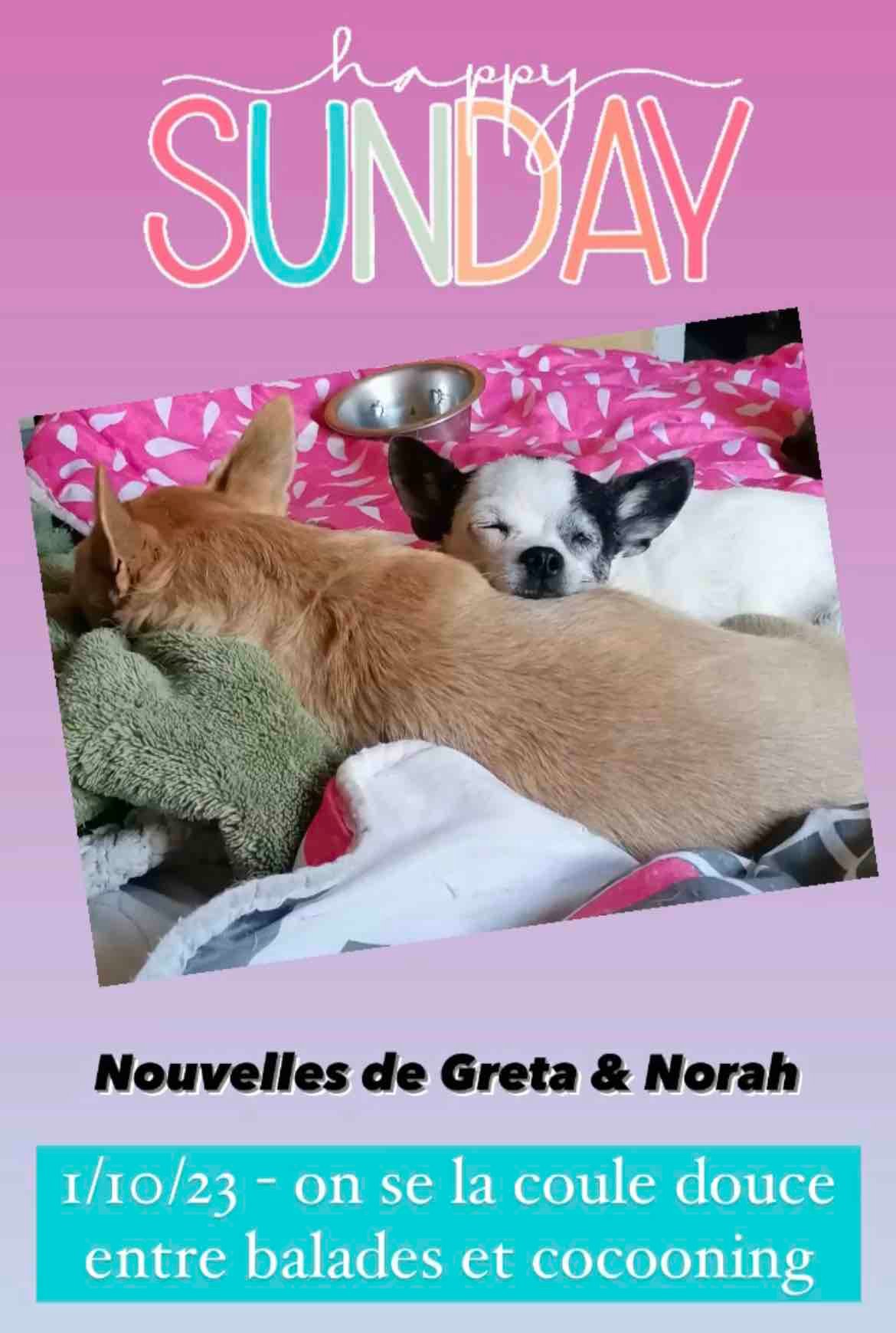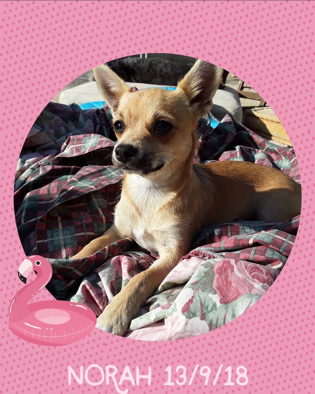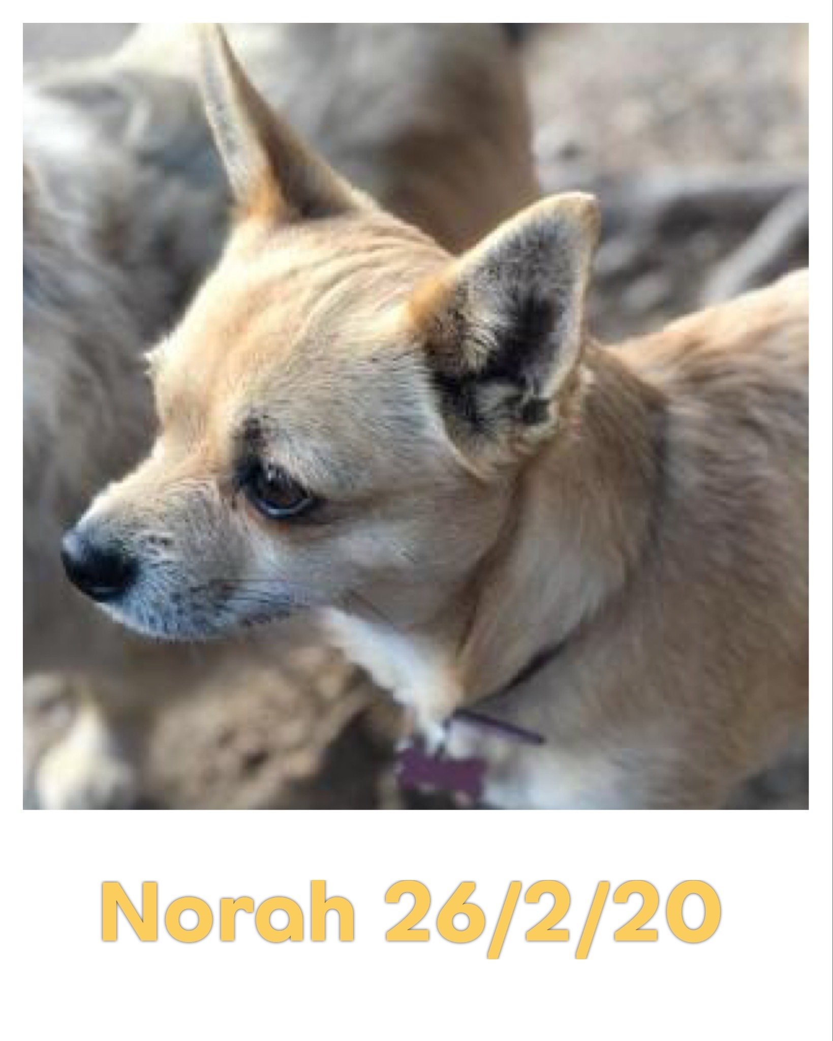 NORAH est issue d’une portée voulue par un couple qui s’est laissé dépasser par le nombre de chihuahuas qui n’étaient pas stérilisés, et ils se sont retrouvés avec une quinzaine de chiens. Leurs tentatives de placer eux-mêmes les divers chiots chez des familles via internet se sont trop souvent avérées être de mauvais placements.