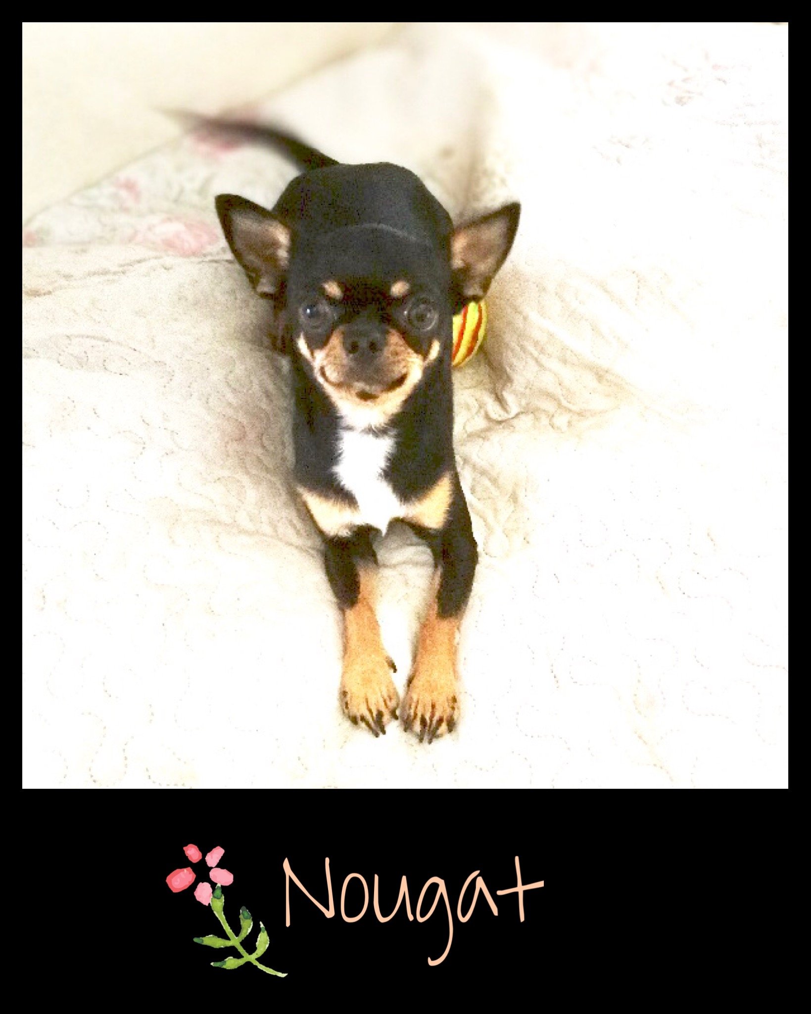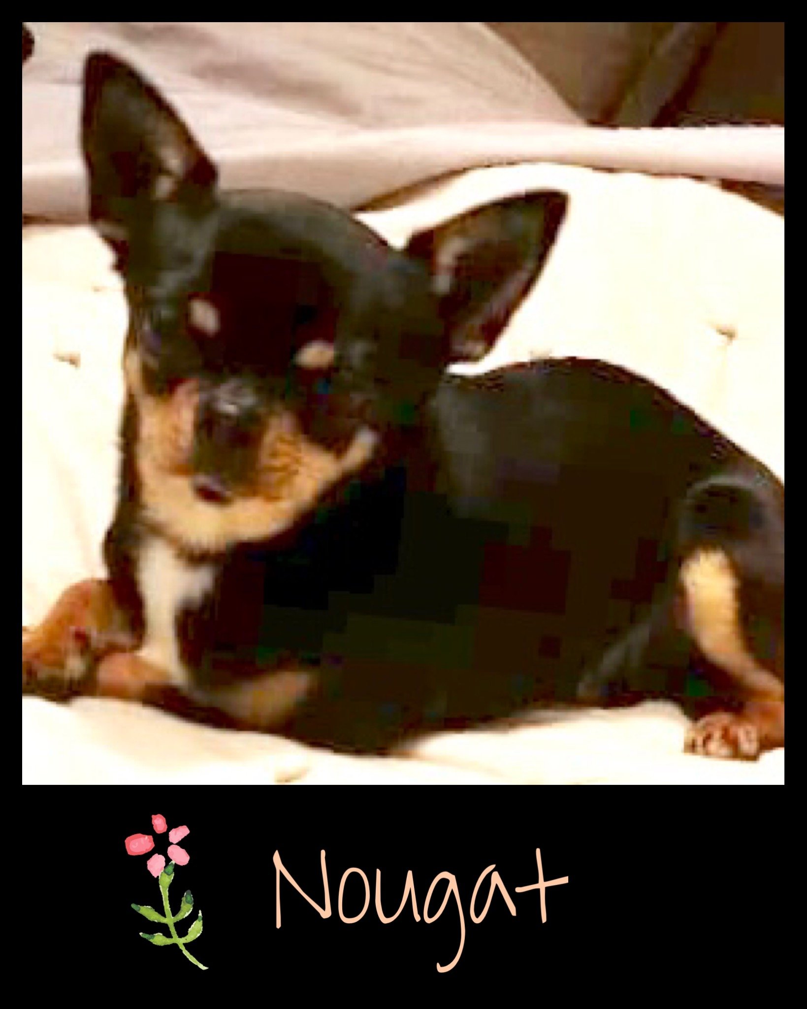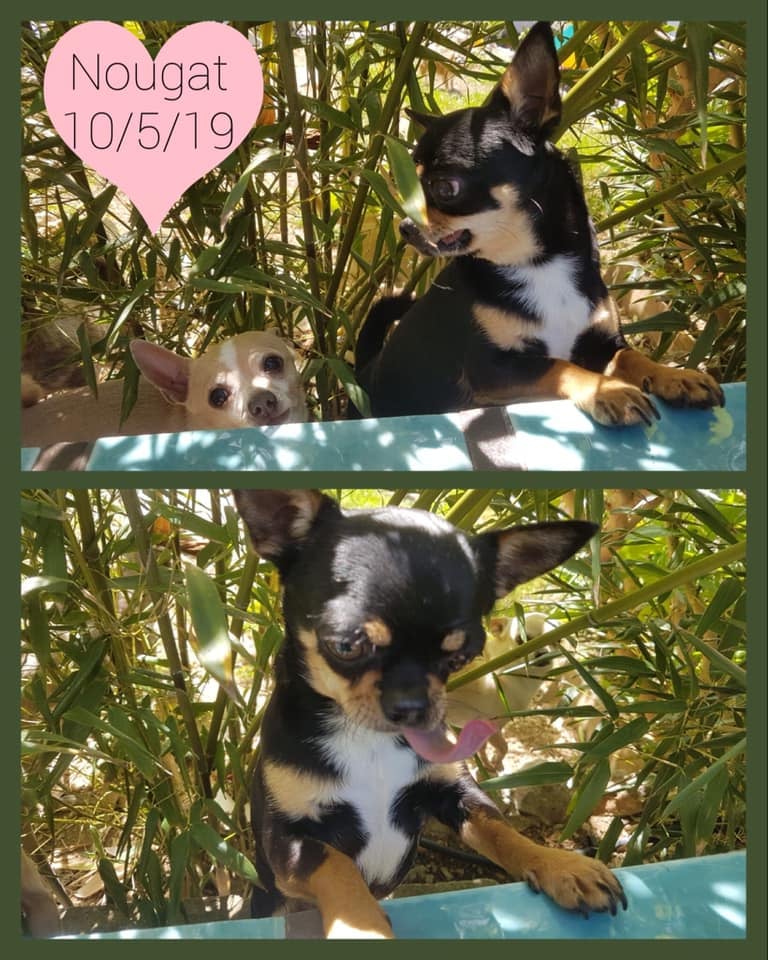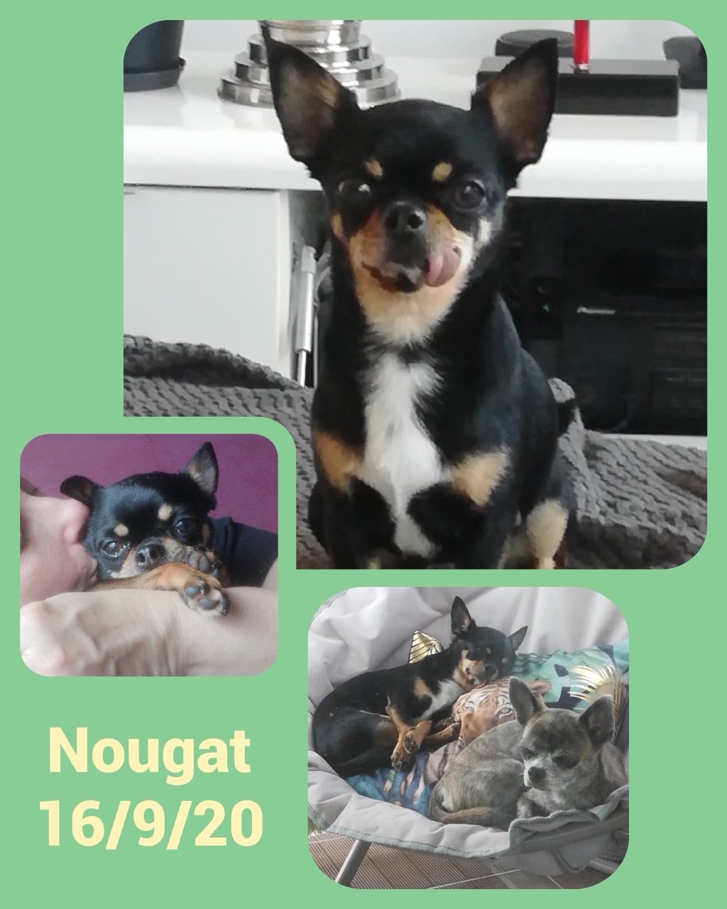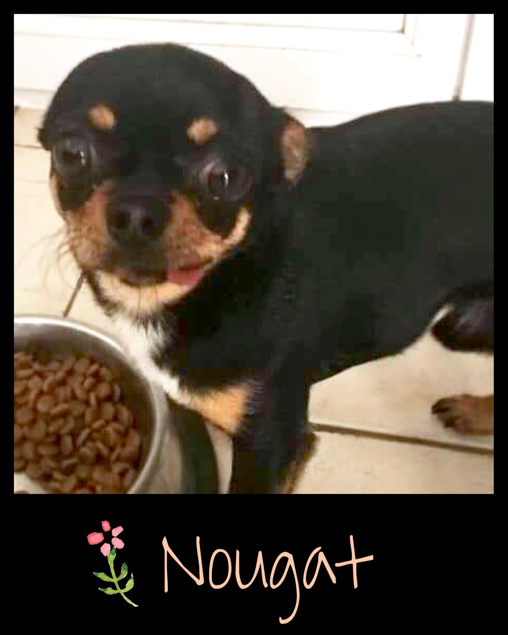 NOUGAT est un chien de typer chihuahua, non lof, couleur noir et feu.