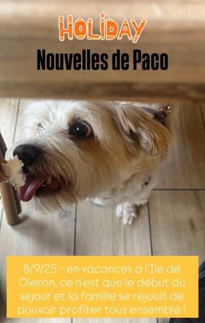 PACO est un chien qui est né chez la famille chez qui il a vécu jusqu’à présent. Habitué à une vie en appartement, il partage son environnement avec sa mère, Leelou.