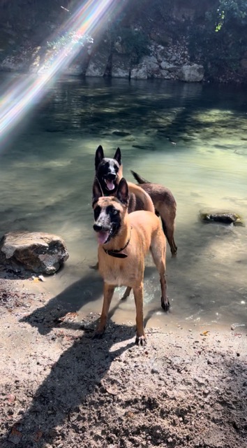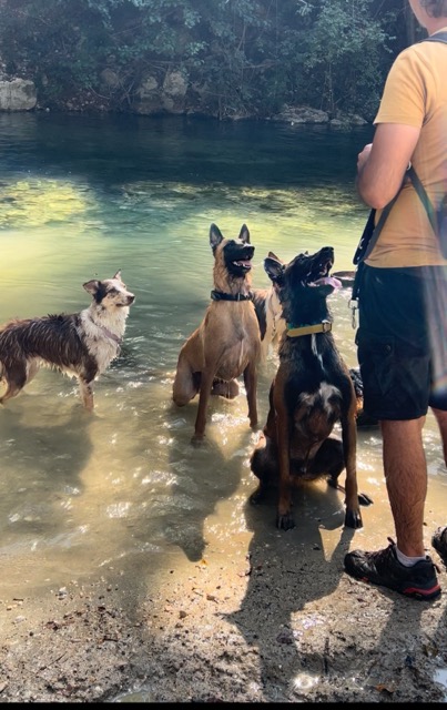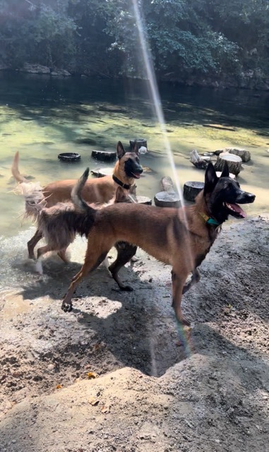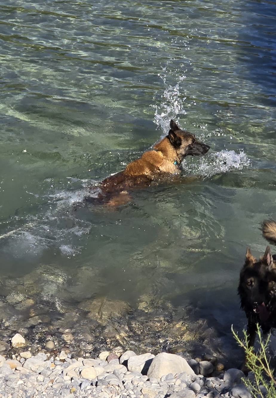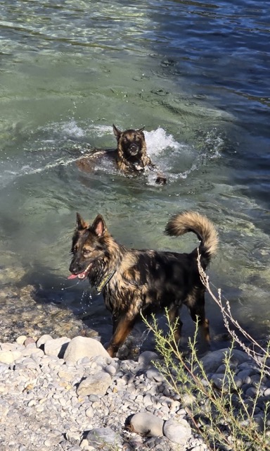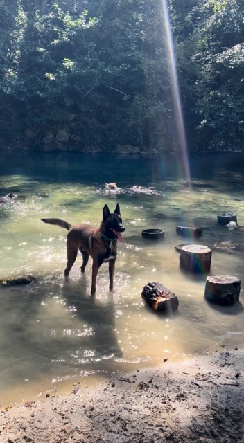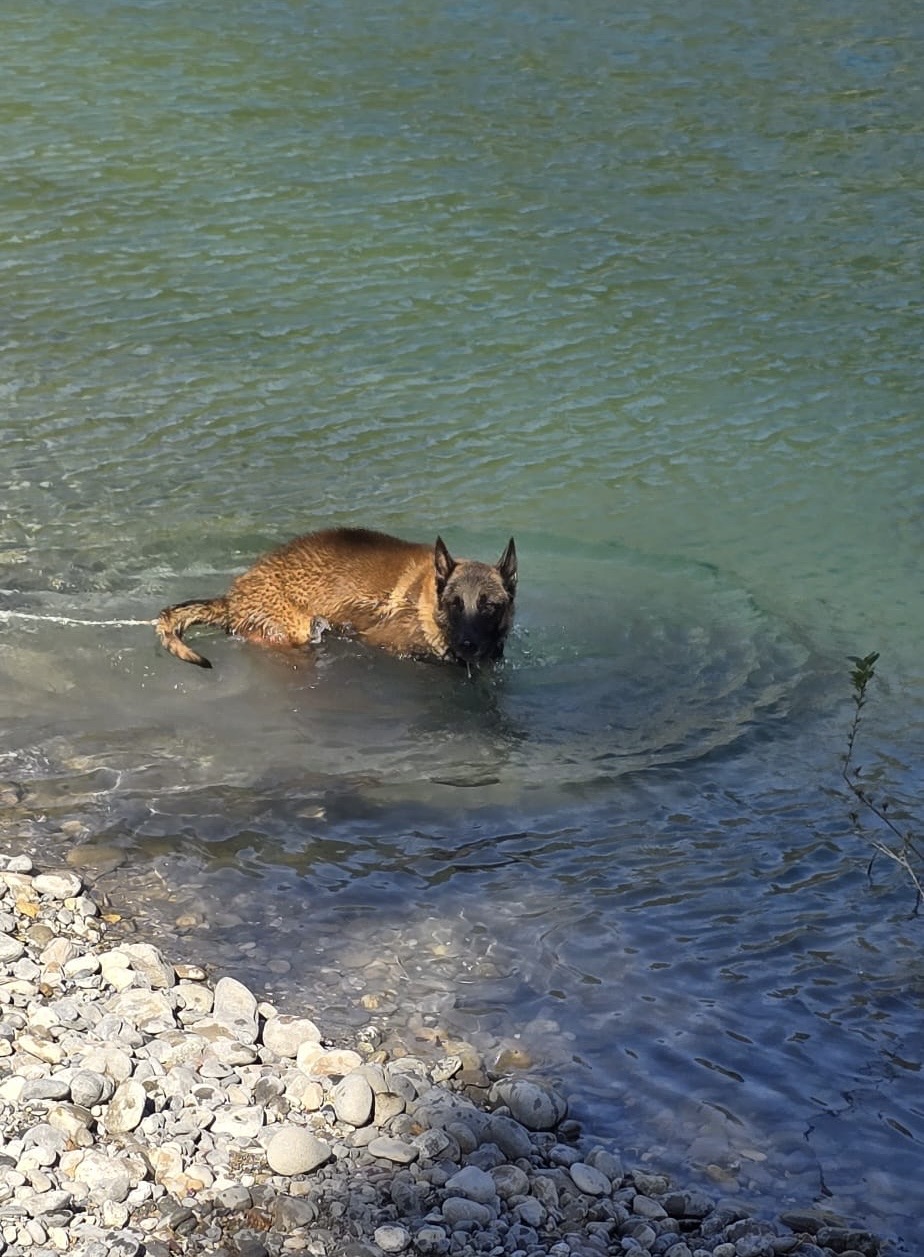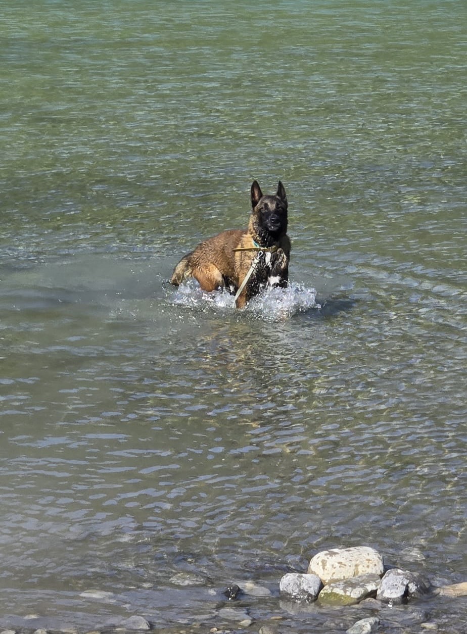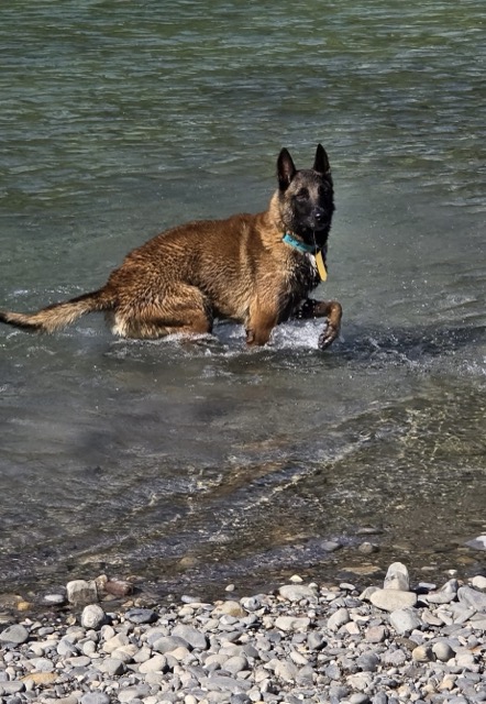 Il adore les balades, il se comporte très bien. Il aime se baigner et jouer.