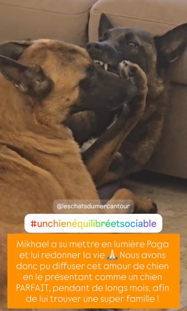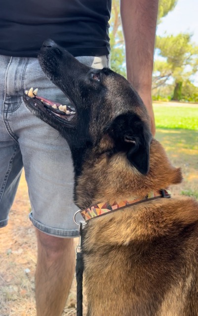 PAGA a des yeux d’amour pour son référent. C’est un chien très proche de son humain. Il a un besoin viscéral d’avoir un référent.