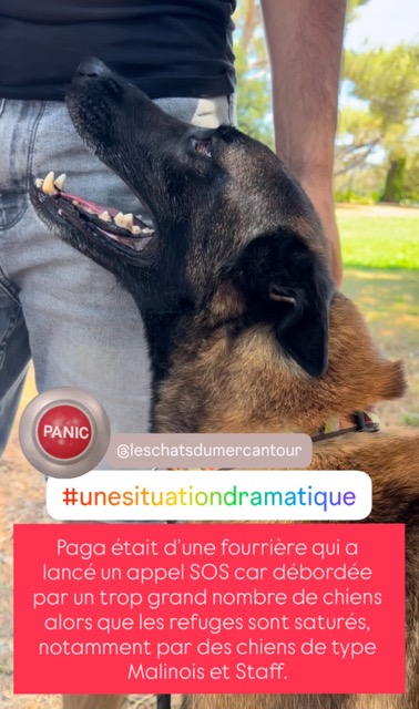 PAGA est un chien qui a été trouvé errant, non identifié, en 2024. Il aura séjourné en fourrière, jusqu’en juillet 2025… les refuges étant saturés, particulièrement de cette race. Grâce à une de nos familles d’accueil, nous avons pu lui offrir la possibilité de sortir, dans l’espoir de trouver une super famille consciencieuse et responsable.