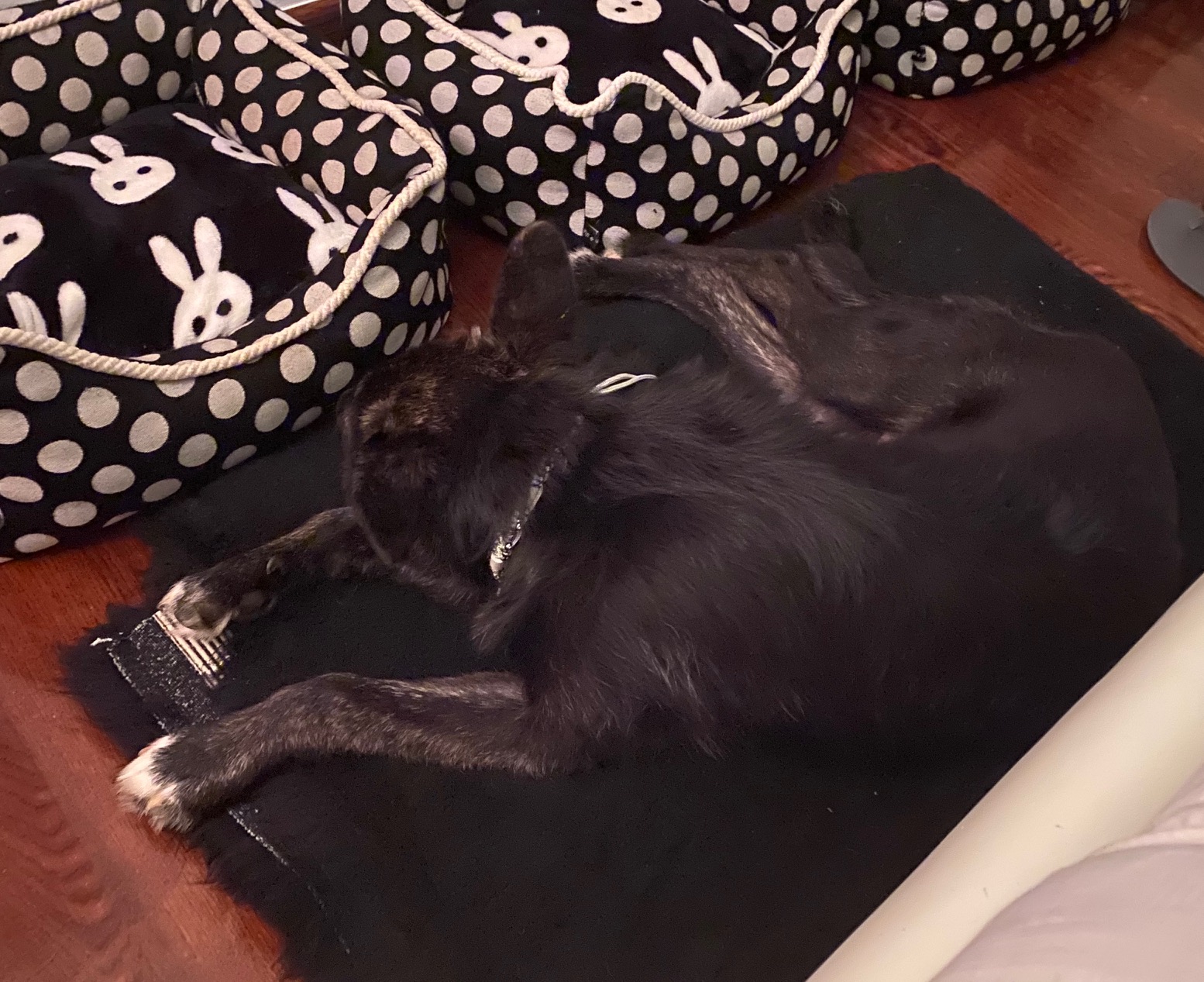 Elle est craintive des inconnus et du monde extérieur. Elle a tendance à se faire pipi dessus si on l’approche de face.