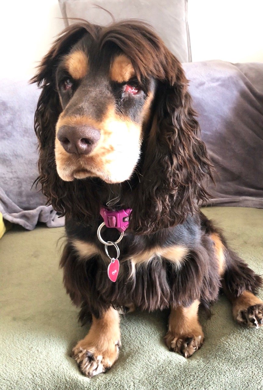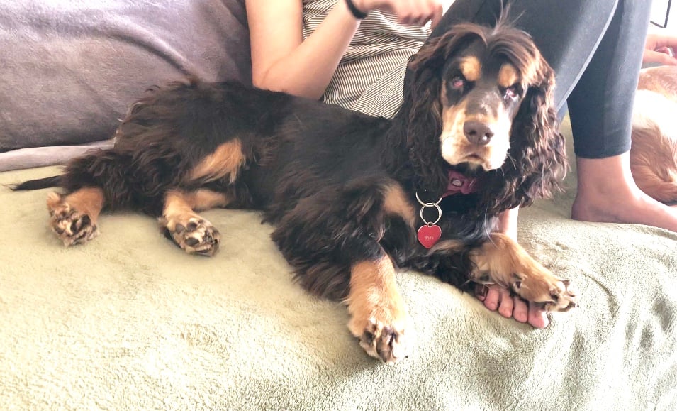 PYTA est une chien de type Cocker Anglais, non LOF, chocolat et feu.