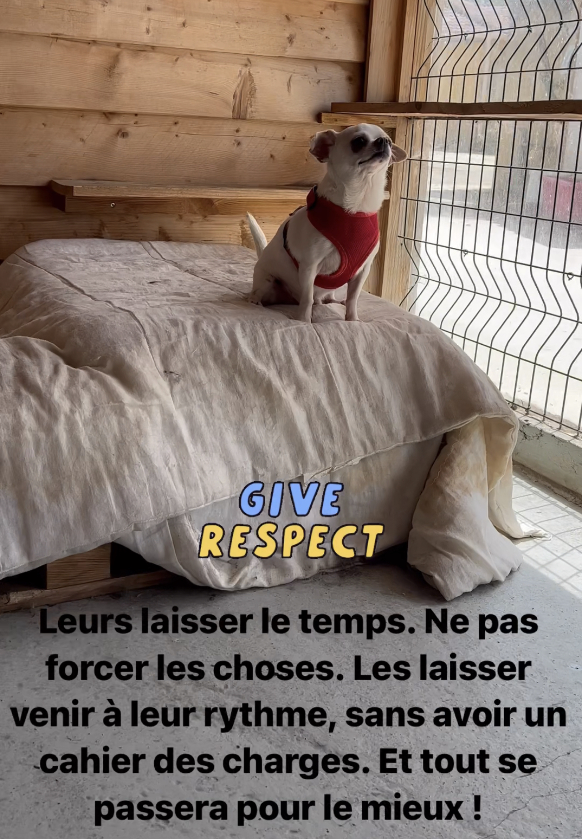 Nous éviterons les enfants de moins de 15 ans ou trop turbulents, qui ne sauront pas respecter l’animal et son espace. Nous éviterons aussi toute personne souhaitant un petit chien de « bras » à bichonner et cajoler.