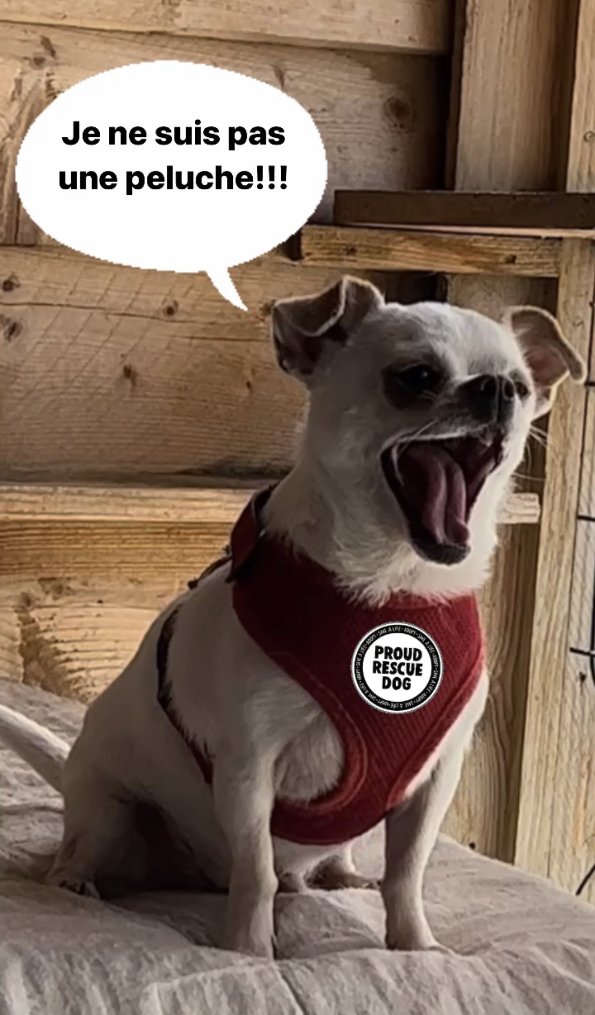 Après un séjour à la SPA et en vue de son caractère potentiellement mordeur (évaluation 2/4), nous avons accepté de prendre la relève pour ce petit bout. Nous ne connaissons rien sur son passé. S’il a du caractère, il a aussi certainement subit un traumatisme, en plus d’être dans un environnement stressant qui est celui du refuge. Il nous est donc difficile de réellement évaluer son caractère et ses réactions.