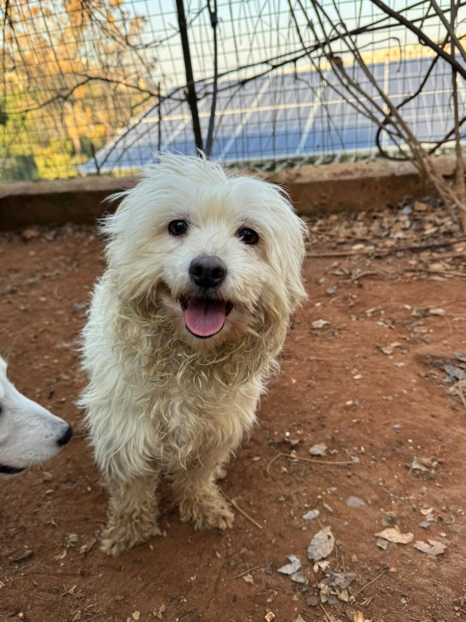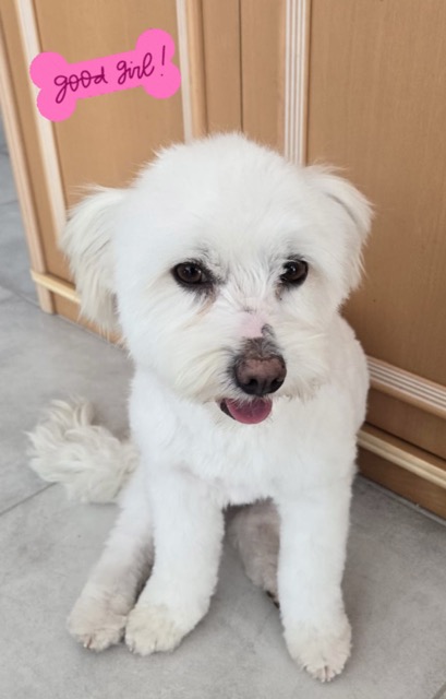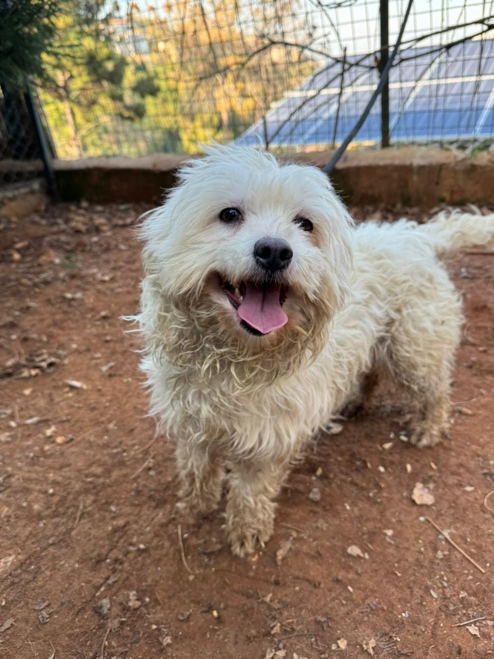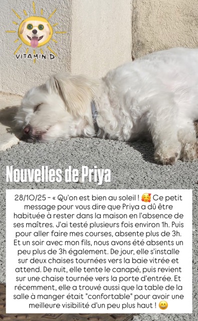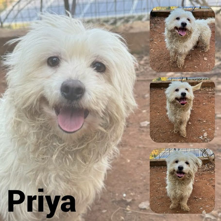 PRIYA est une chienne de type croisée bichon, non lof, couleur blanche.