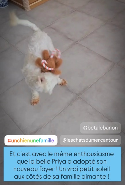 *Ce chien est actuellement au Liban et ne sera rapatrié en France, dans le 06, que lorsqu'une famille d’accueil ou d'adoption se proposera de l’accueillir. La date du rapatriement dépendra de la disponibilité des vols. Merci donc de faire preuve de compréhension et de patience