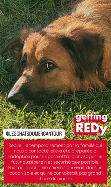 * Environnement souhaité : uniquement en maison avec extérieur sécurisé (attention aux points d’eau), dans un environnement rural. L’environnement doit être doux, calme et routinier. Pas plus de 4h d’absence dans la journée pour que l’adoptant puisse être une personne réellement disponible et concentrée sur les besoins du chien et de son adaptation. La présence d’un congénère sympa et confiant sera un plus pour elle.