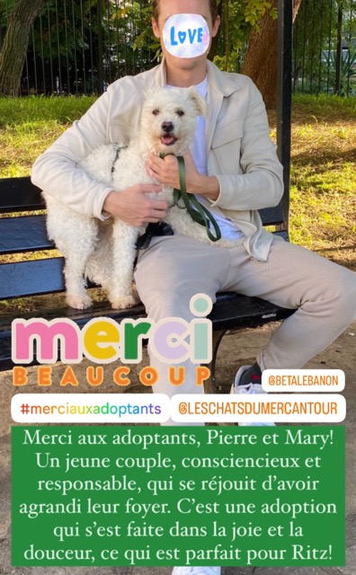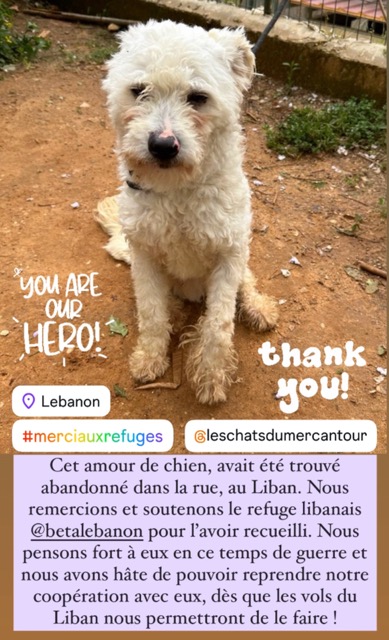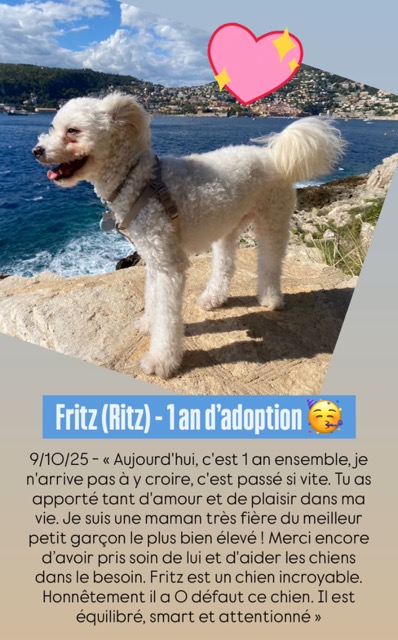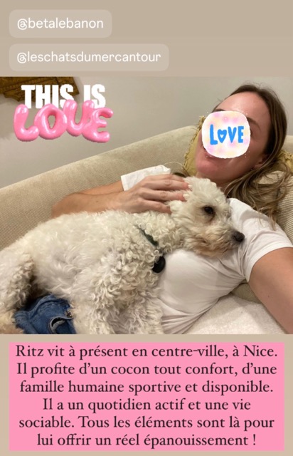 Préparé pour voyager (protocole sanitaire antirabique), il est à présent rapatrié en France, dans les Alpes Maritimes et il se trouve en accueil familial à Tourrettes-sur-loup.