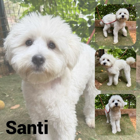 SANTI est un chien de type Bichon, non lof, couleur blanc.