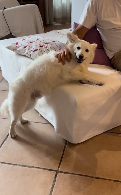 Doux, gentil mais aussi sensible, il a besoin d’un environnement structuré et posé, avec un humain doux qui sache lui mettre un cadre et qui puisse lui offrir un quotidien actif et enrichissant.