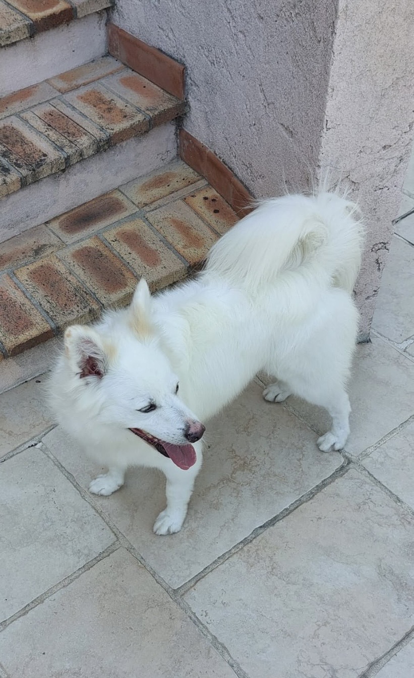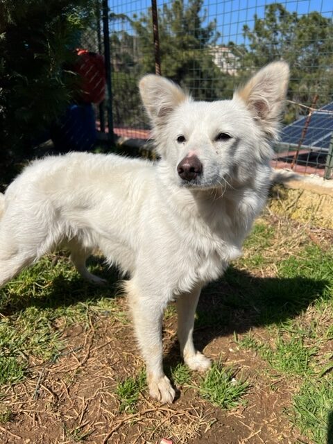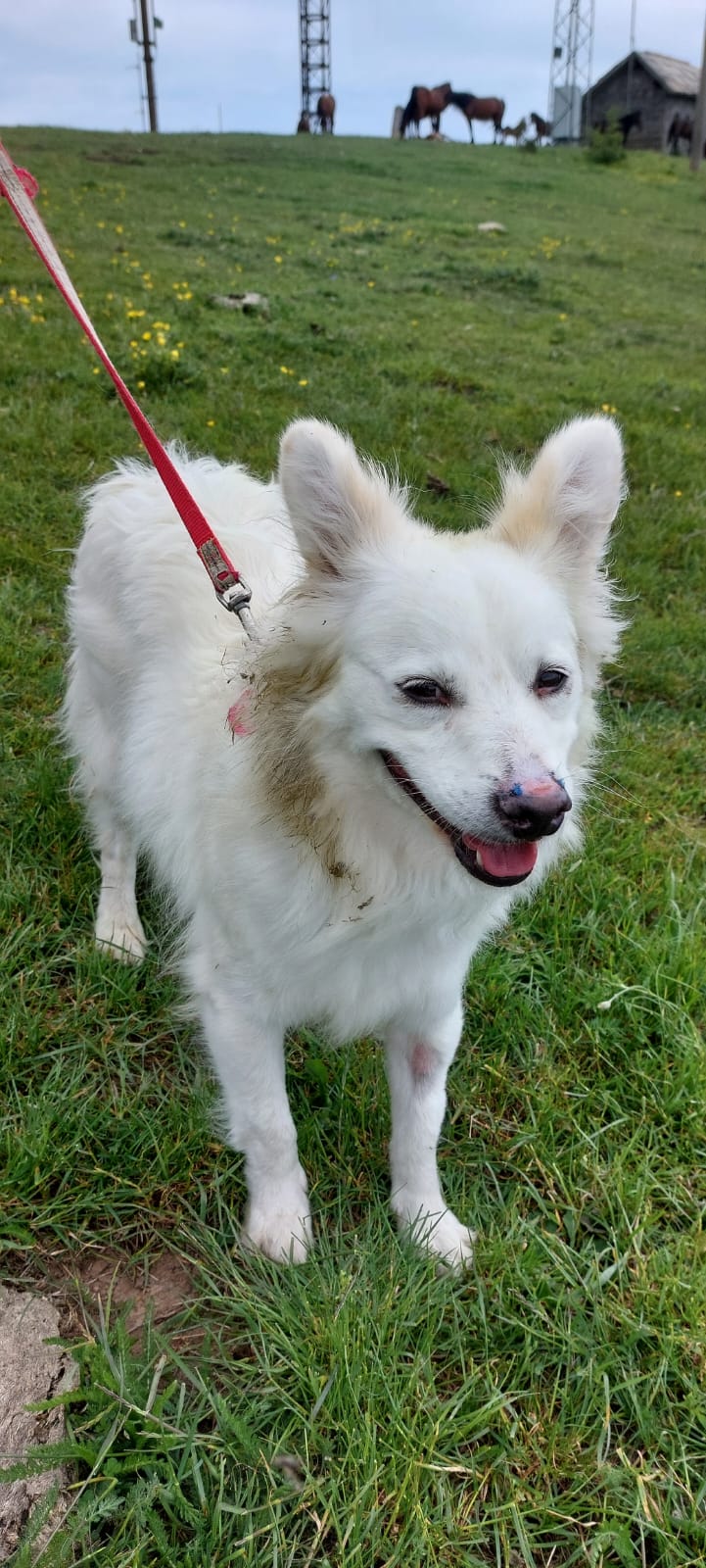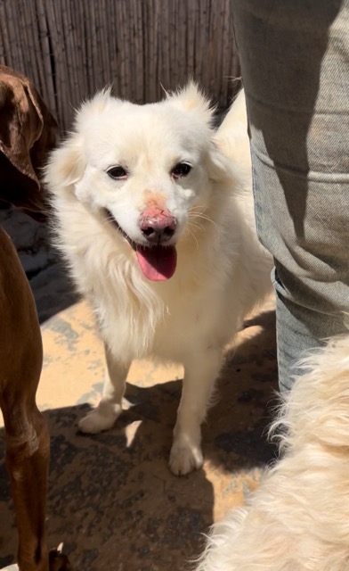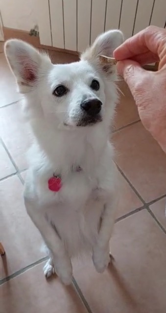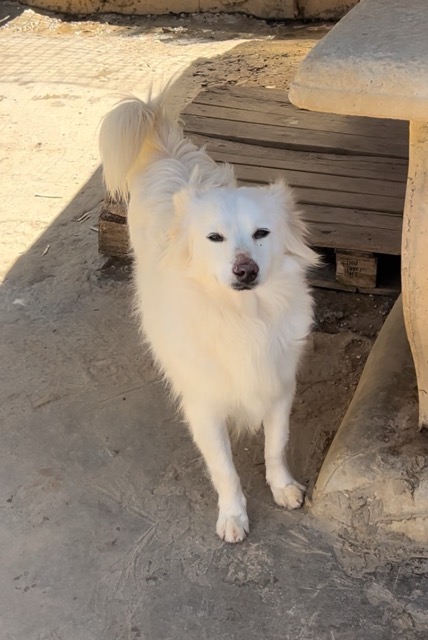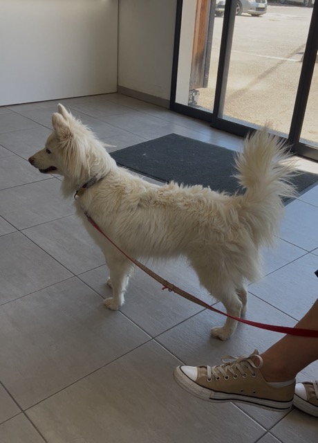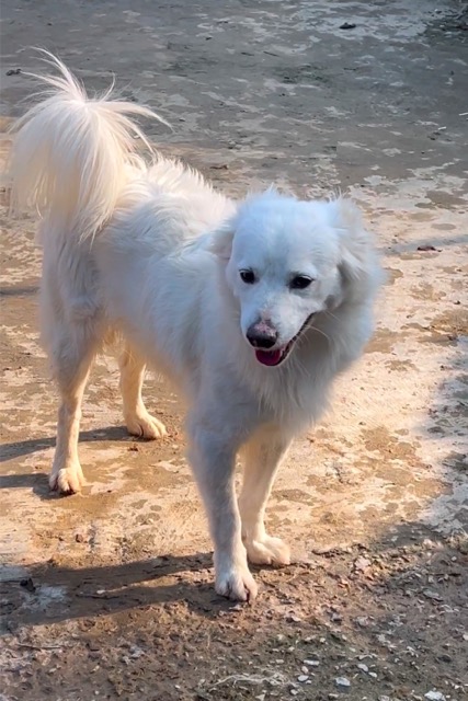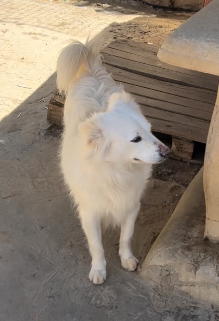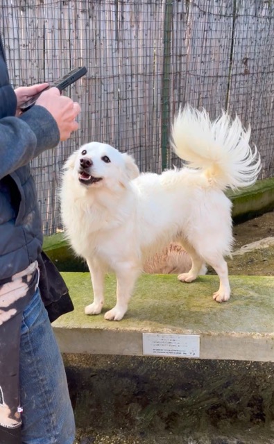 SATO est un chien de type Spitz, non lof, couleur blanc.