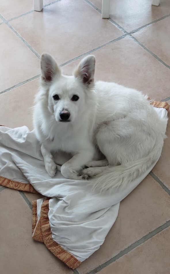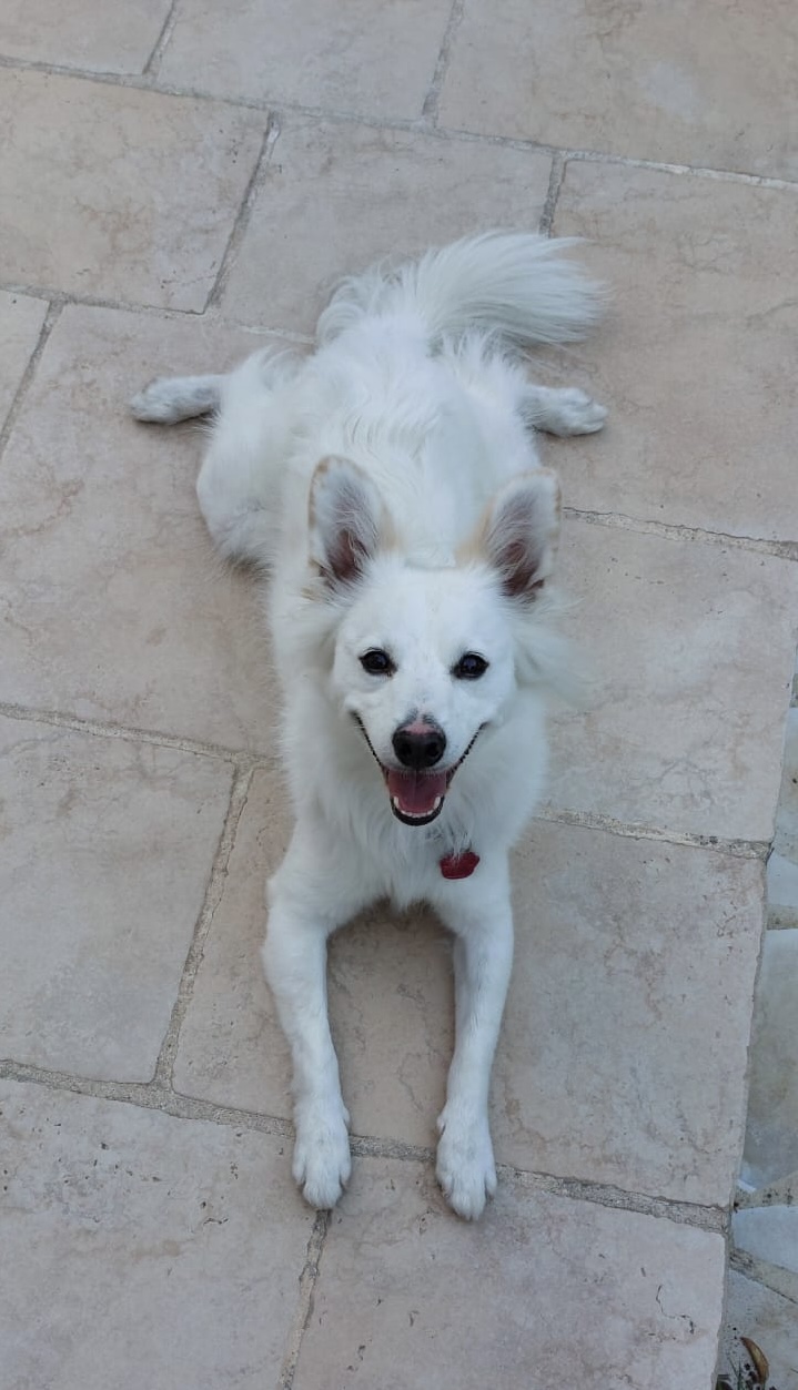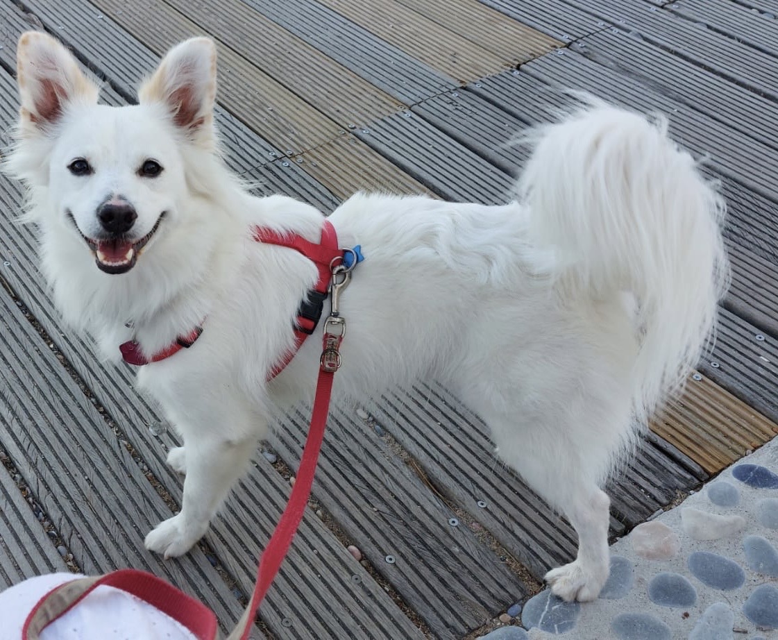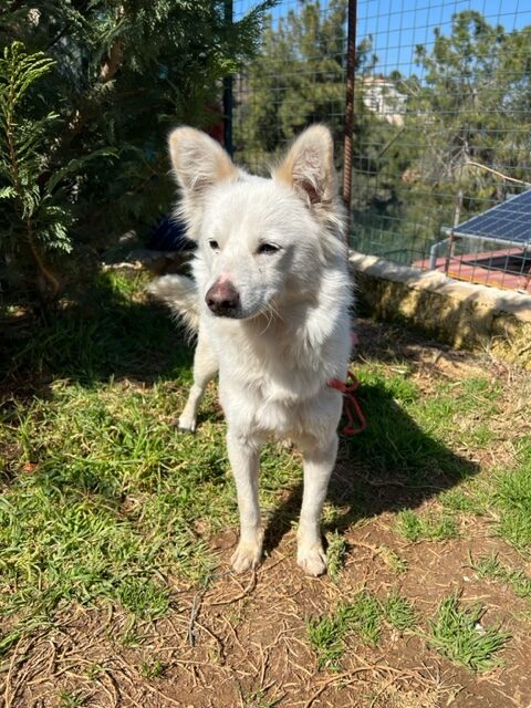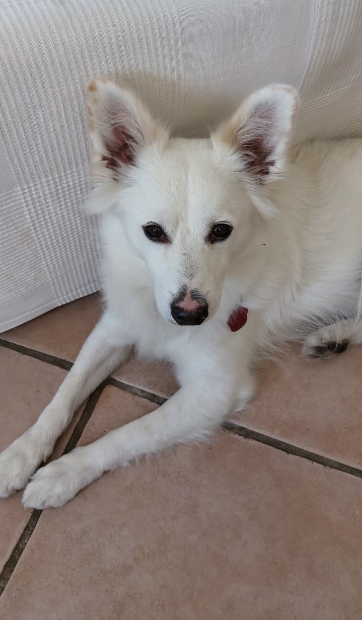 SATO est un chien de type Spitz, non lof, couleur blanc.
