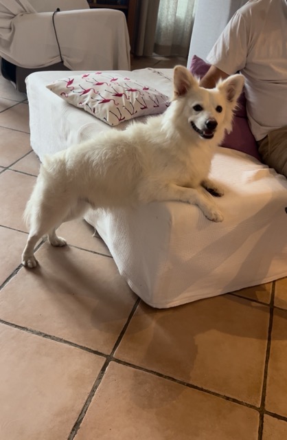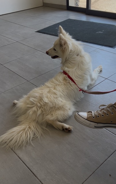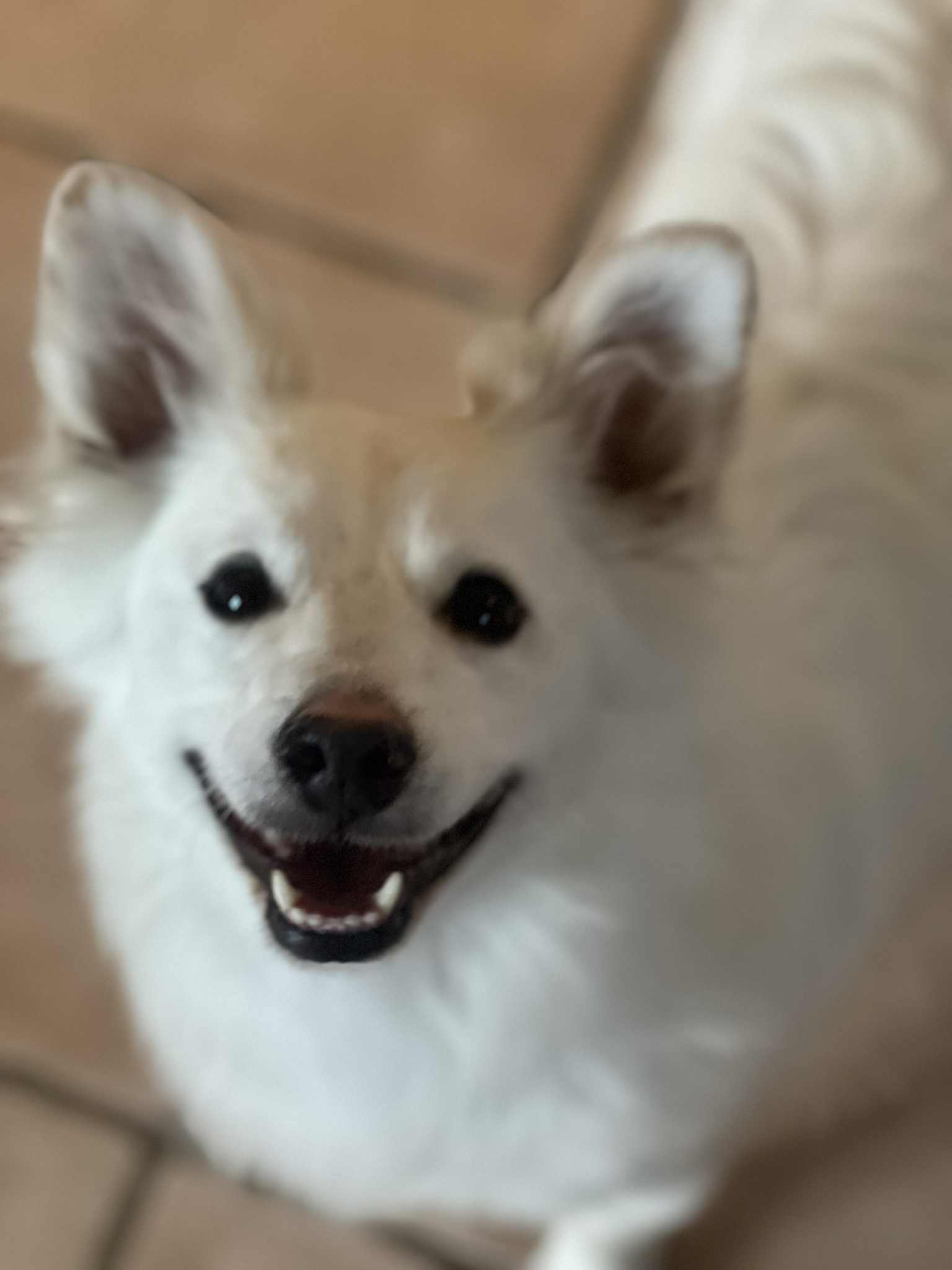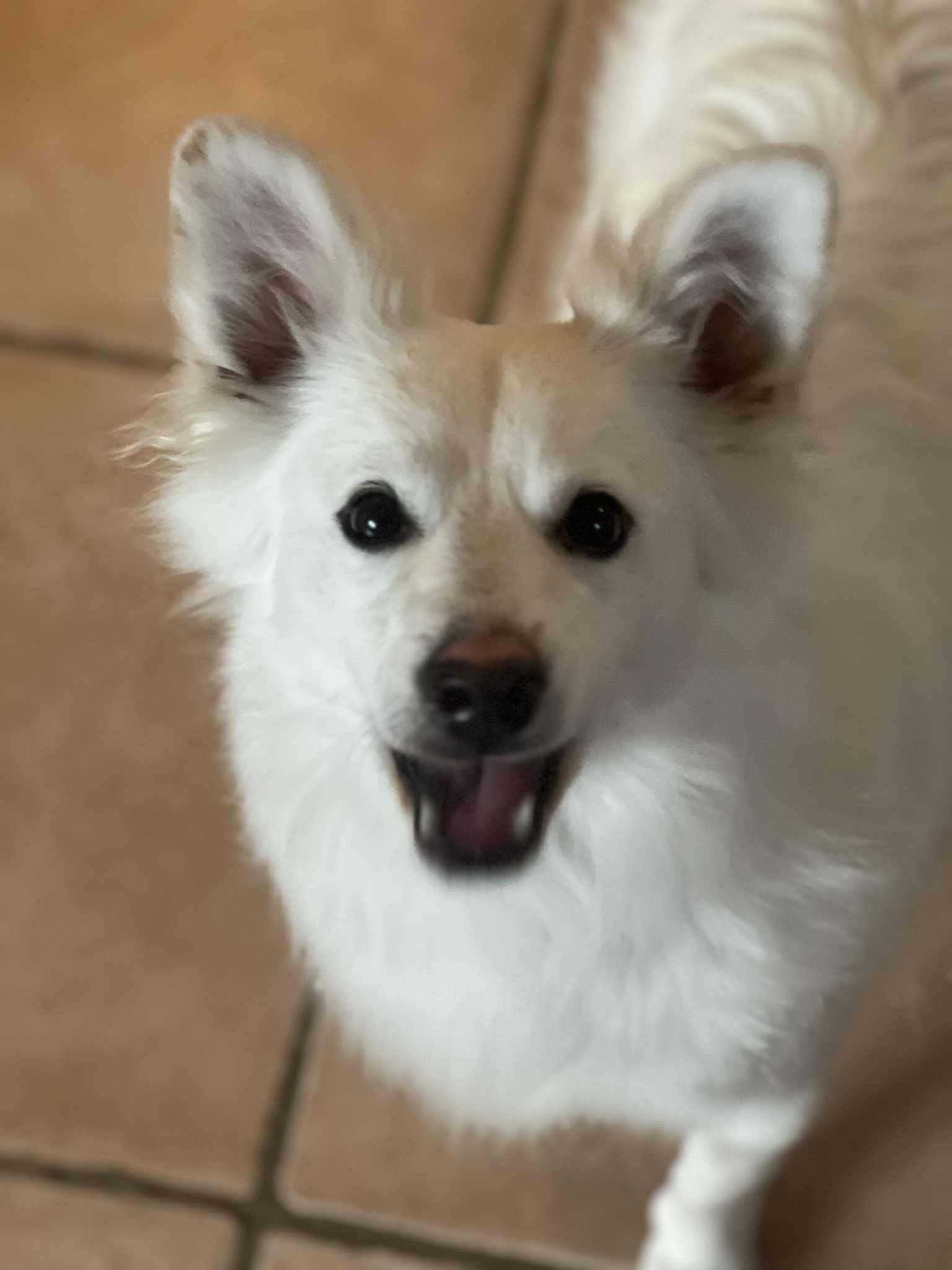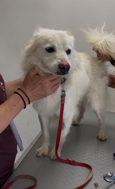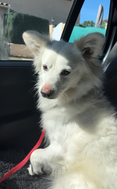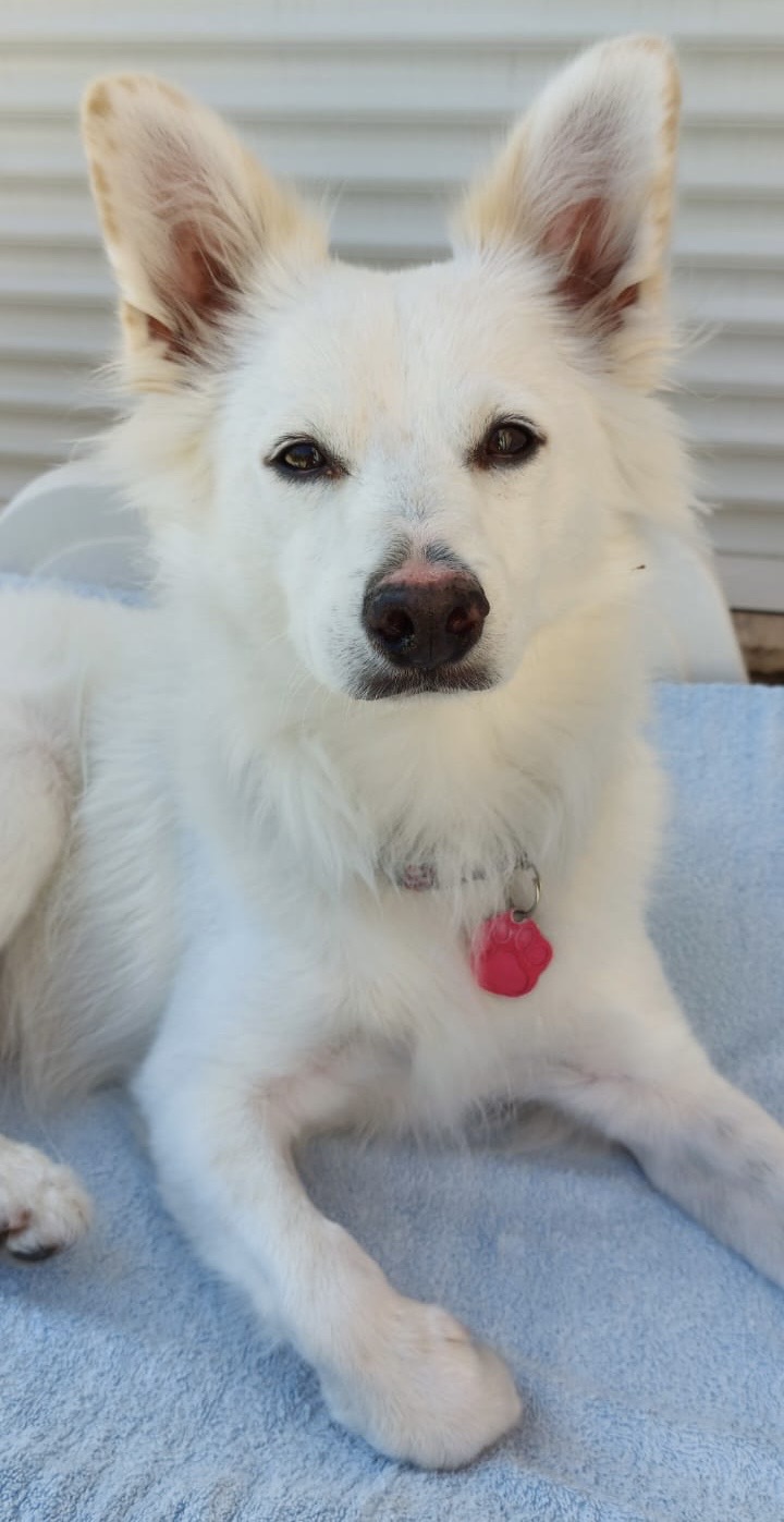 SATO est un chien de type Spitz, non lof, couleur blanc.