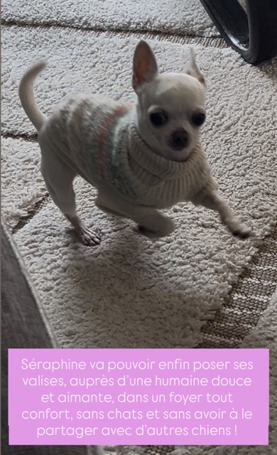 SERAPHINE est une chienne de type chihuahua, non lof, couleur blanche.
