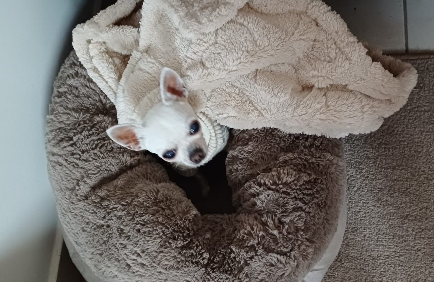 Sa date de naissance était initialement estimée au 10/10/2012 mais avec le temps on pense qu’elle a plutôt 7 ans et elle pèse 1,5kg.
