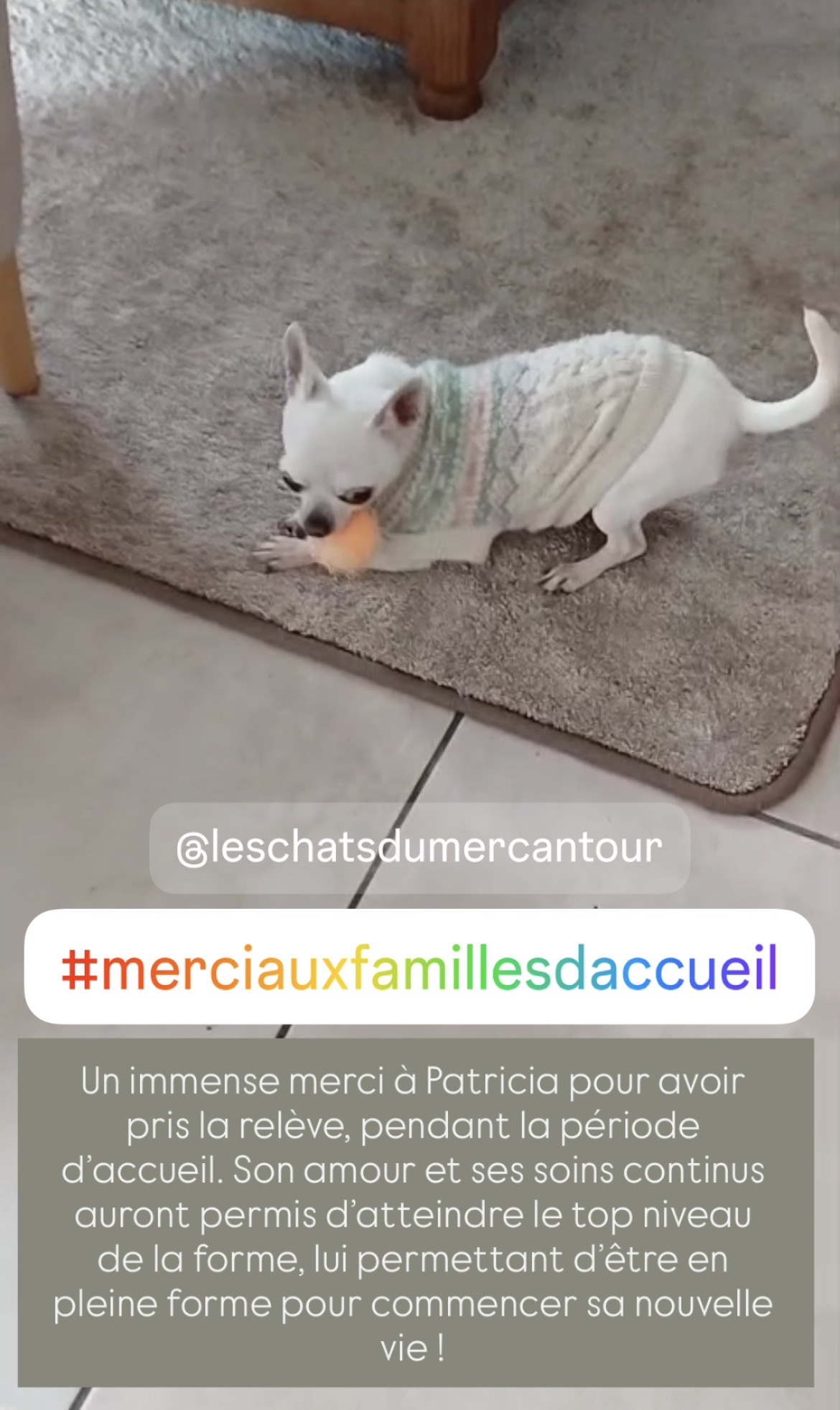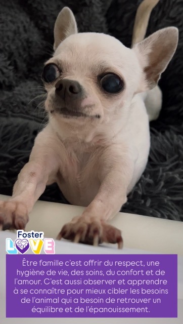* Famille souhaitée : un foyer soigneux, investi et disponible, qui ait conscience de toutes les responsabilités qu’impliquent le fait d’accueillir un animal. Sa famille devra pouvoir lui offrir une vie stimulante et équilibrée pour lui donner accès à un épanouissement physiologique, émotionnel et mental.