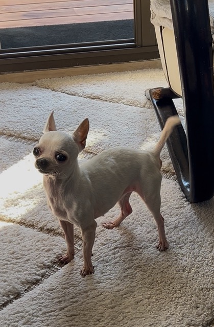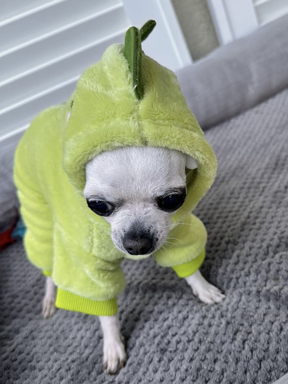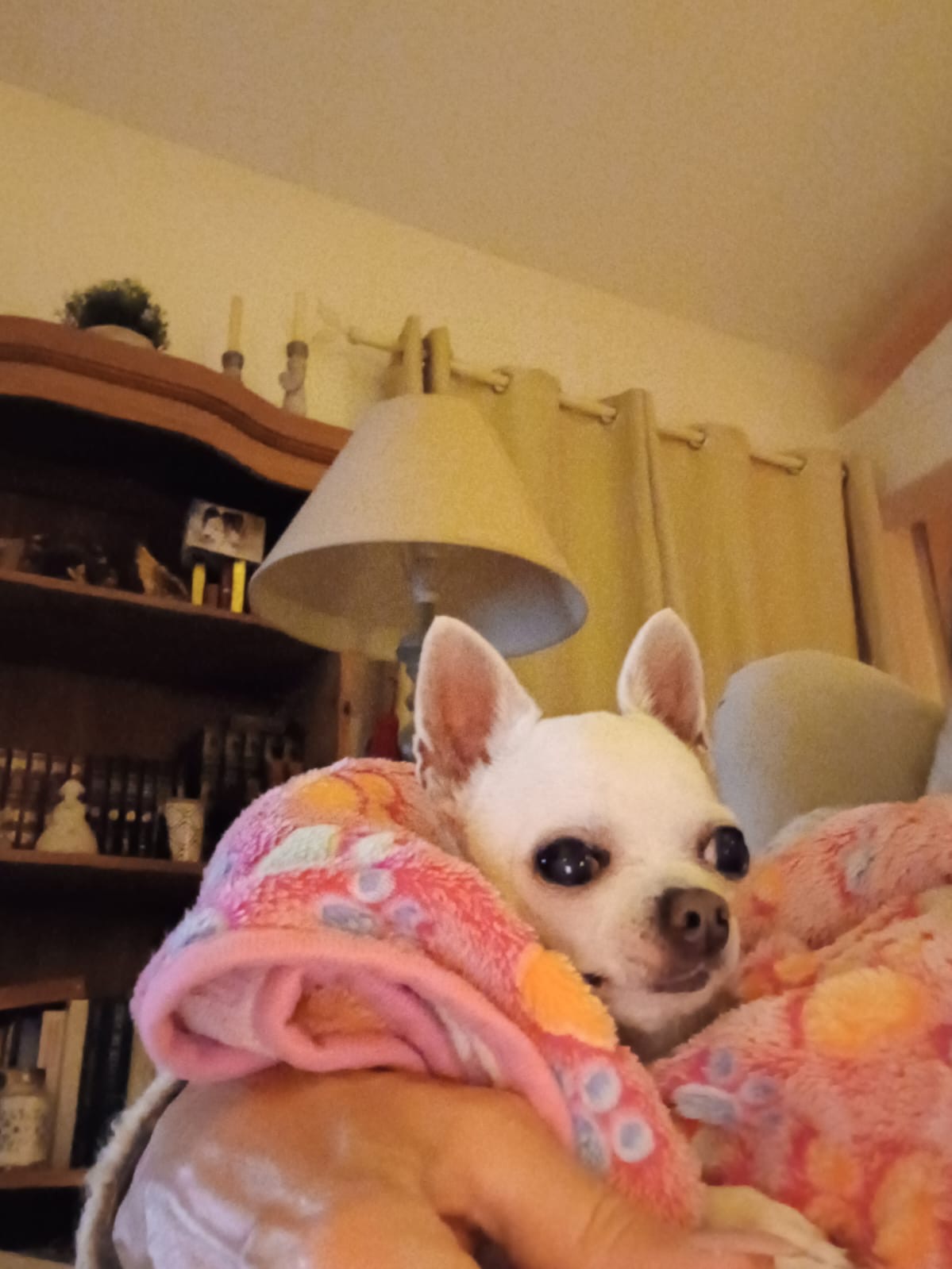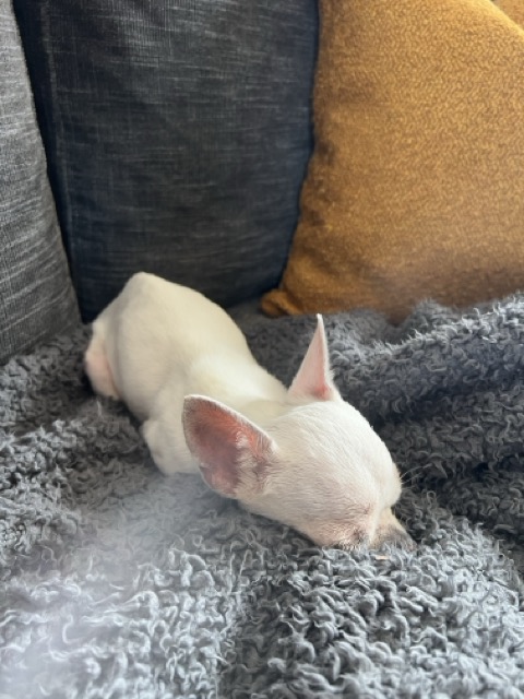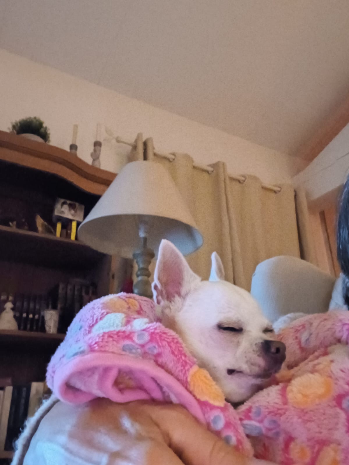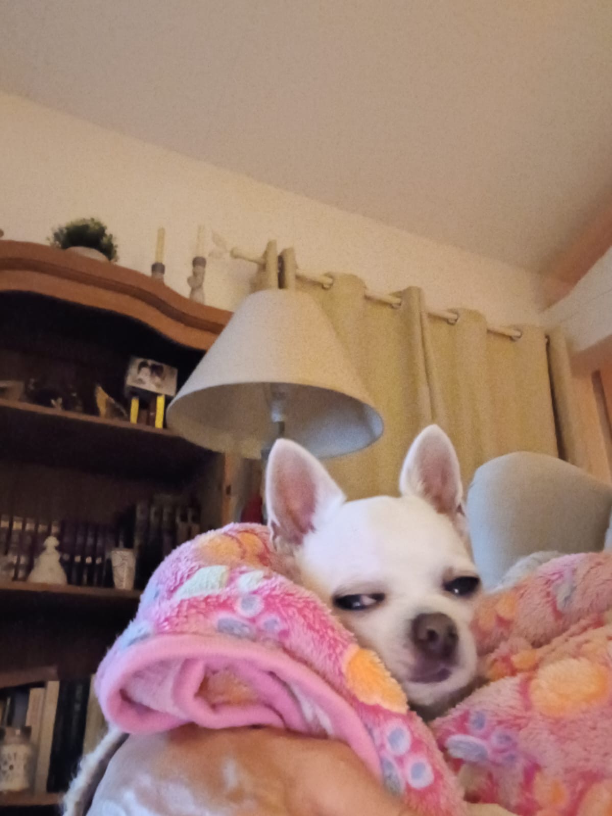 SERAPHINE est une chienne de type chihuahua, non lof, couleur blanche.