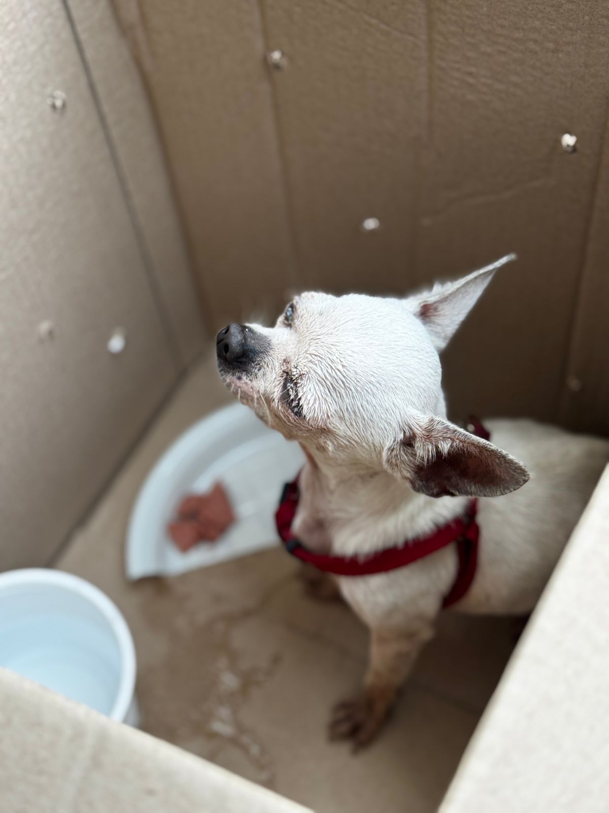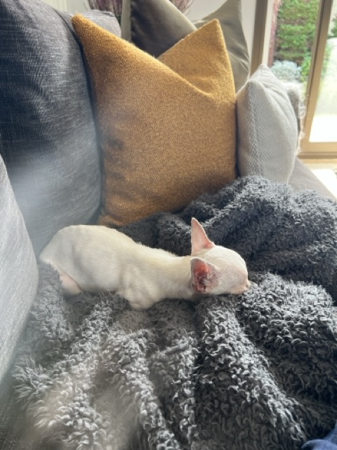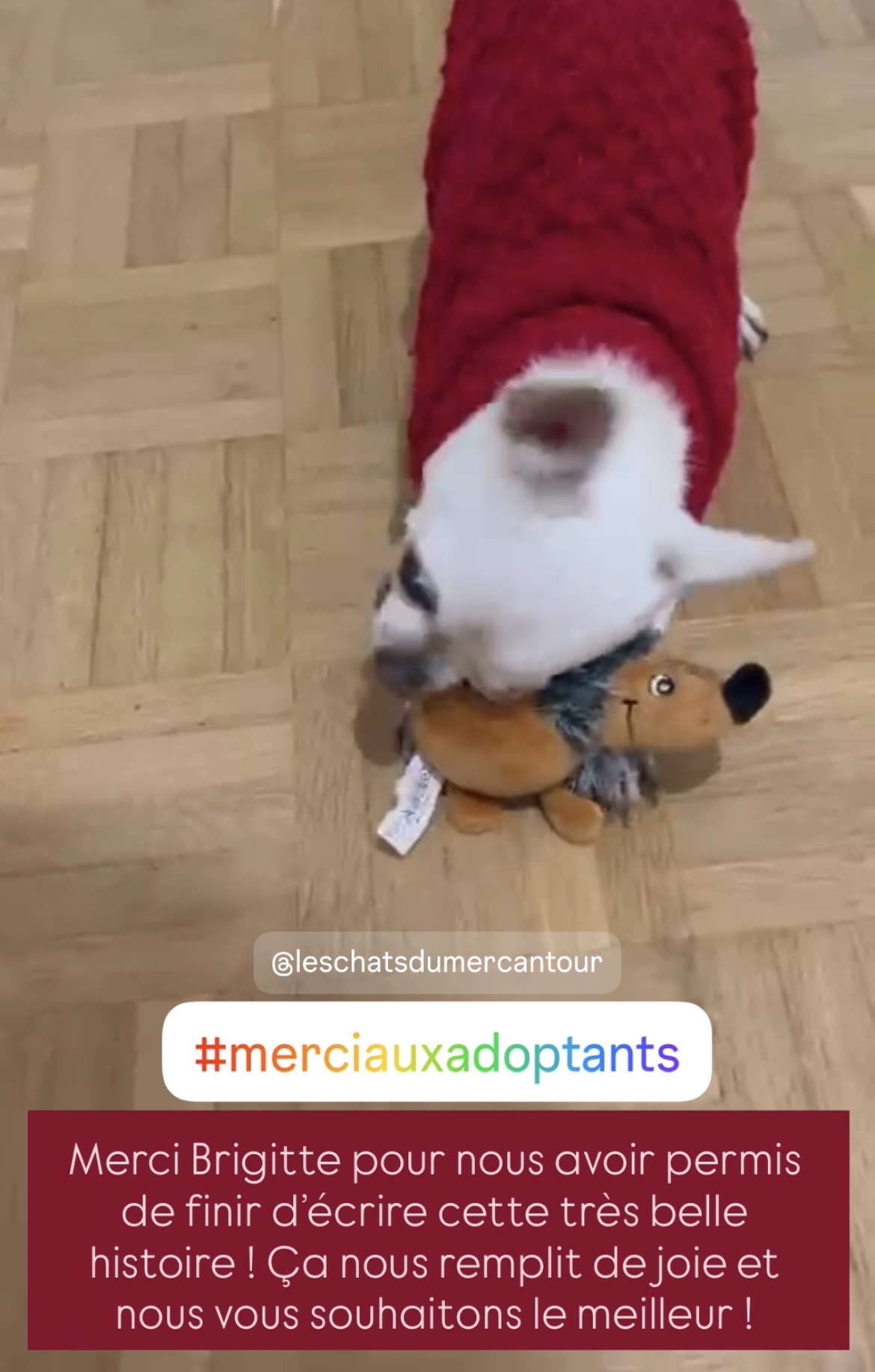 Sa date de naissance était initialement estimée au 10/10/2012 mais avec le temps on pense qu’elle a plutôt 7 ans et elle pèse 1,5kg.