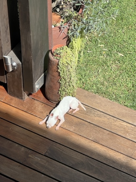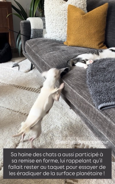 Ses passions sont la bronzette, l’herbe, le confort et les bons repas faits maison.