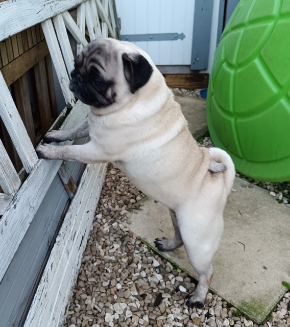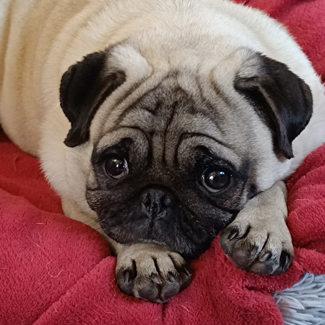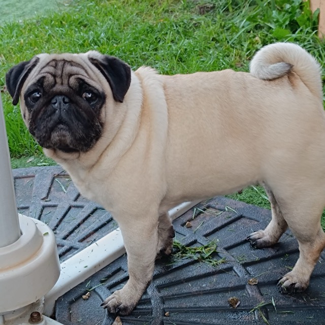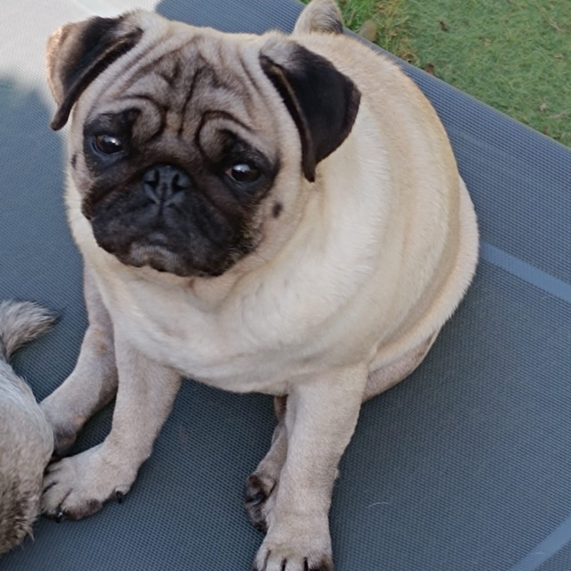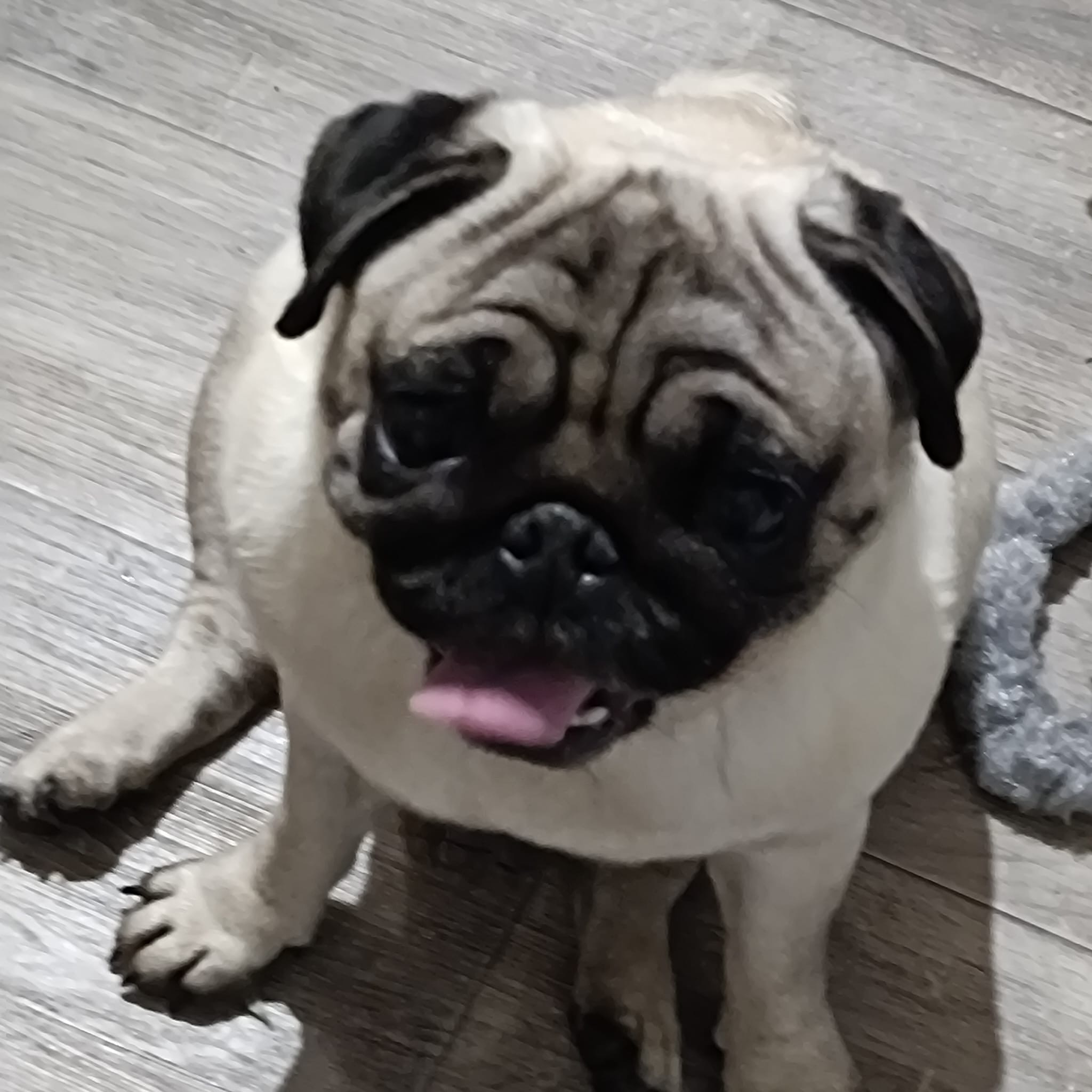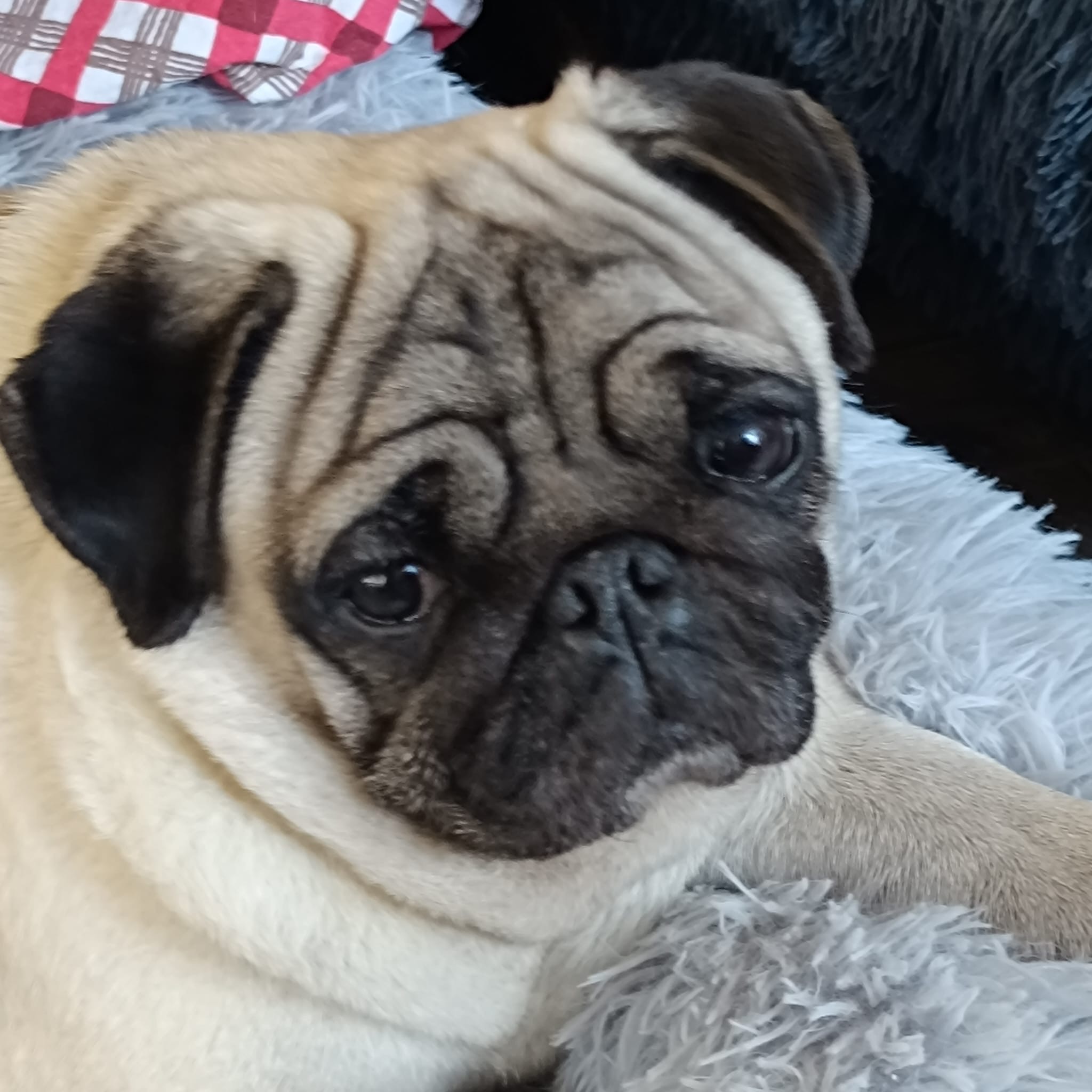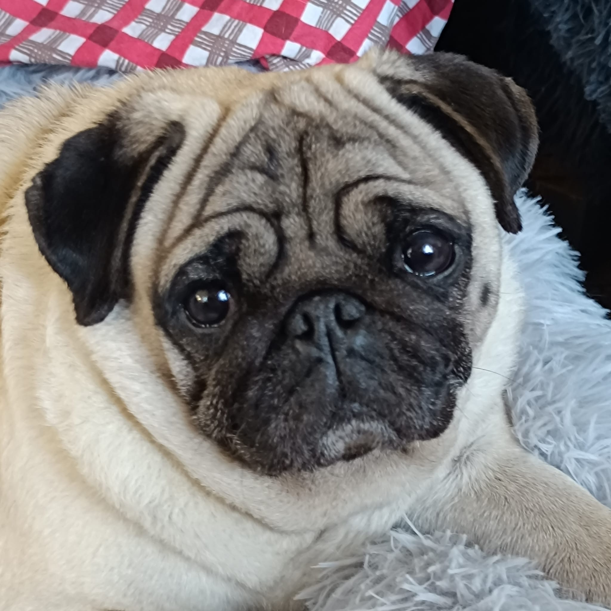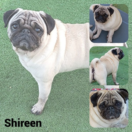 SHIREEN est une chienne de race Carlin, non lof, couleur sable au masque noir.