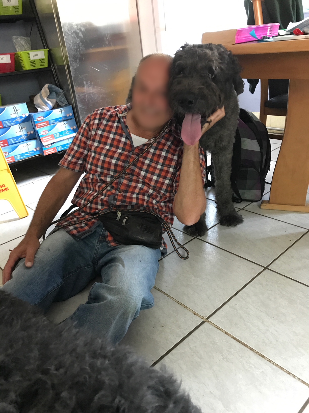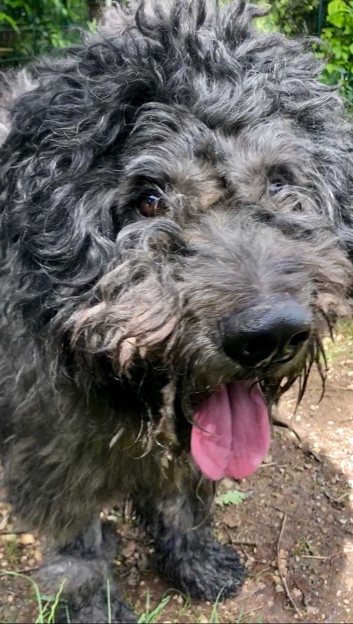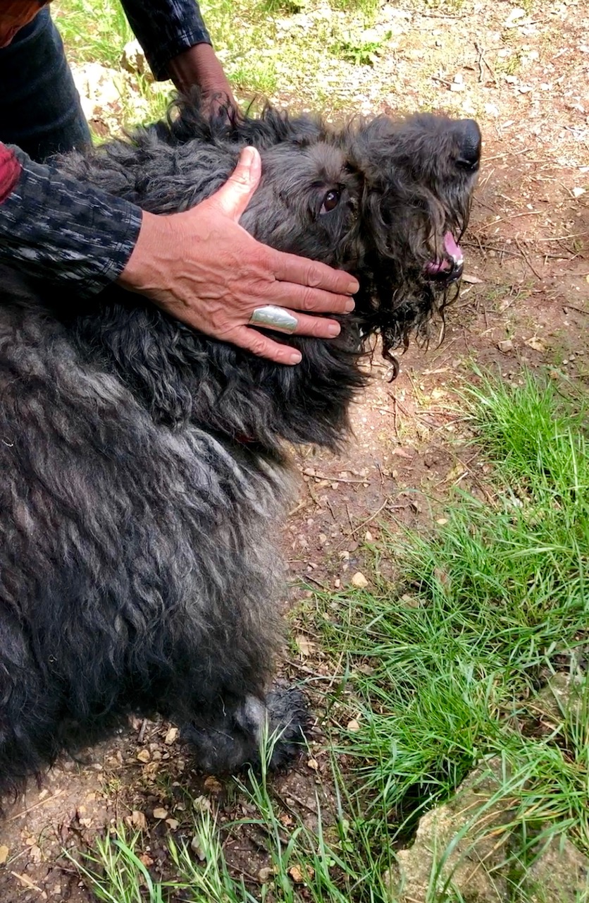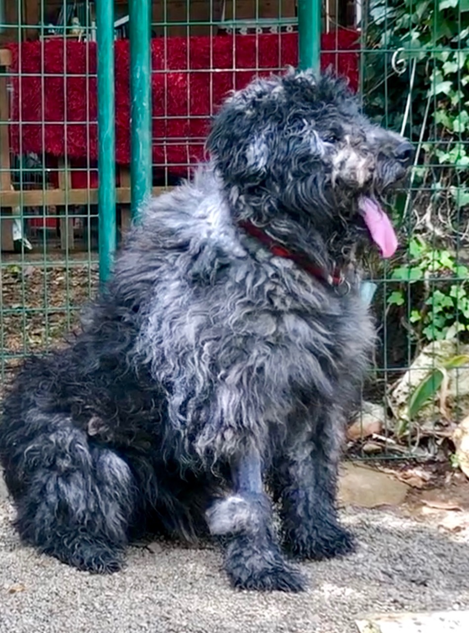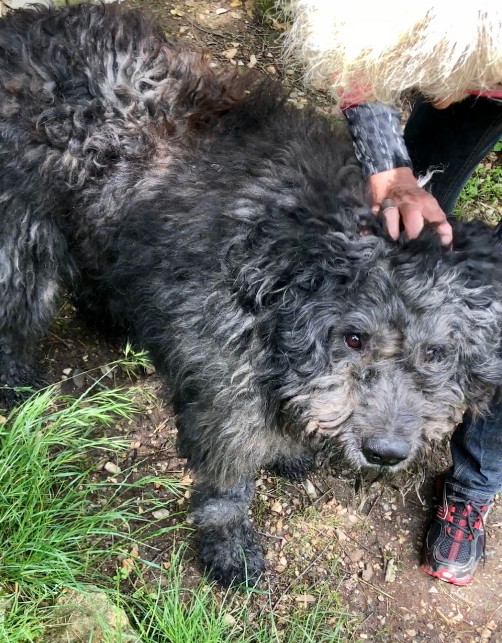 Quoi qu’il en soit, il est arrivé à l’association dans un état PITOYABLE, que ce soit physiquement ou psychologiquement. Même le tondre a été une mission en elle même, et pour cette raison il faudra un moment pour que son poil reprenne pour le côté « esthétique » (ce qui n’est vraiment pas la priorité dans son cas, puisqu’il avait même des morceaux de grillage qui lui rentraient dans la peau sous sa « carapace » de poils).